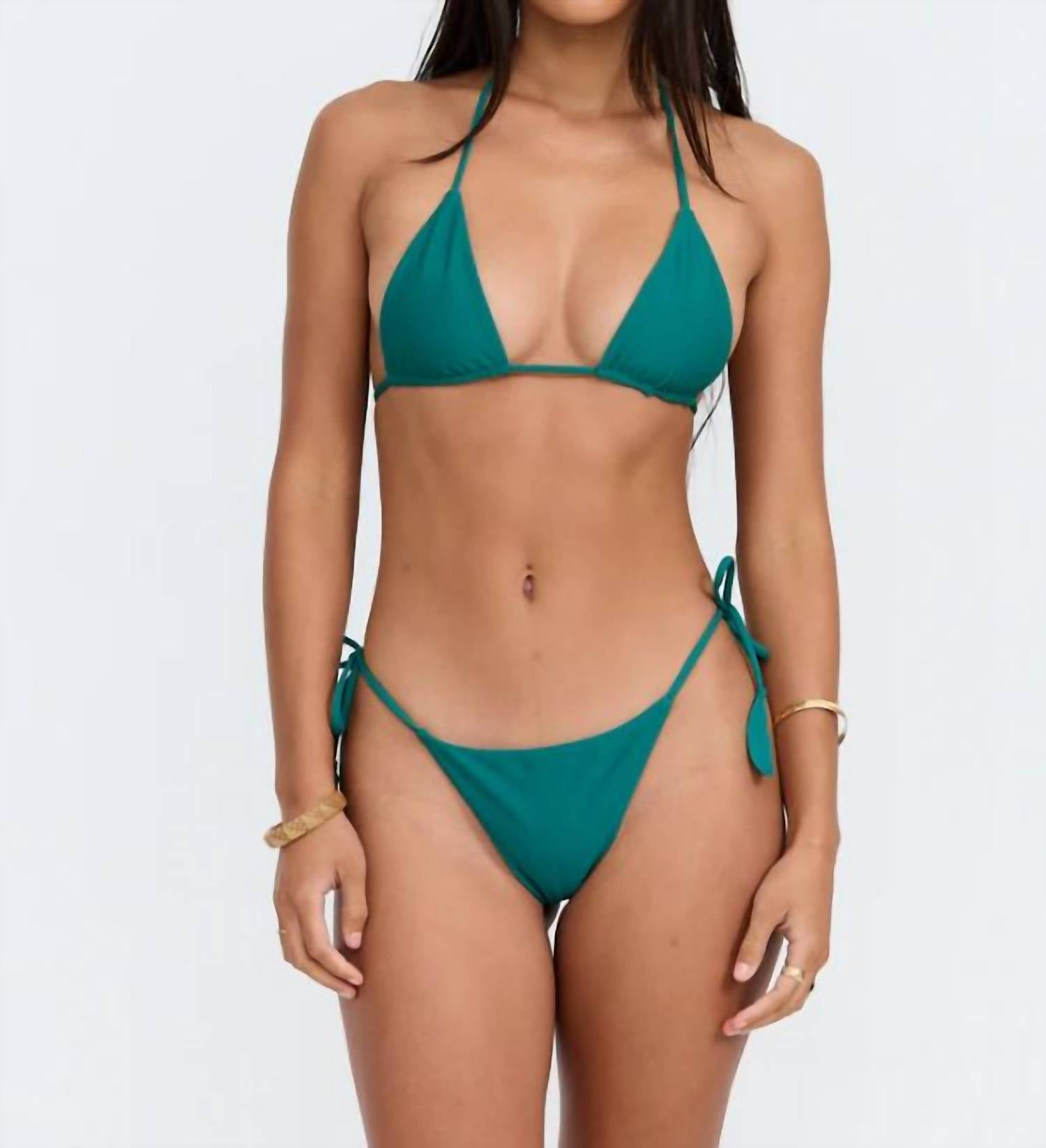 Make waves with the Tunnels Bikini Bottom in Lagoon by Benoa, an essential piece for your beach day look. These string bikini bottoms feature a high-rise tie-side design with medium to skimpy coverage, accentuated by Benoa's signature leaf detail. Crafted from an 80% recycled nylon and 20% elastane blend, they're designed in Hawaii and made in Indonesia. Easy to care for, simply hand wash cold and lay flat to dry in the shade. Model is wearing a size small.