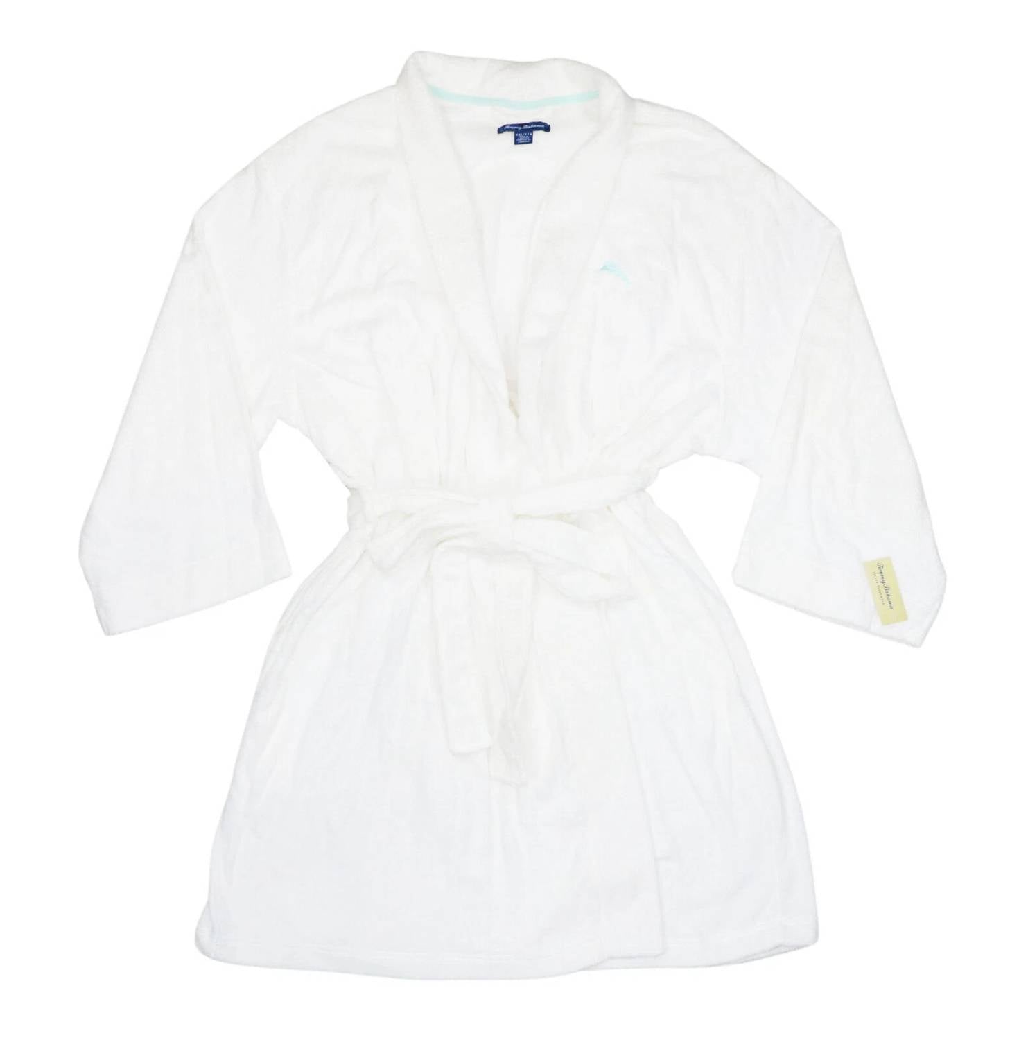 Indulge in luxurious comfort with the Men's Plush Terry Belted Bathrobe by Tommy Bahama. Crafted from plush cotton, this white robe promises a soft and cozy experience. Its belted closure allows for an adjustable fit, perfect for relaxing moments.