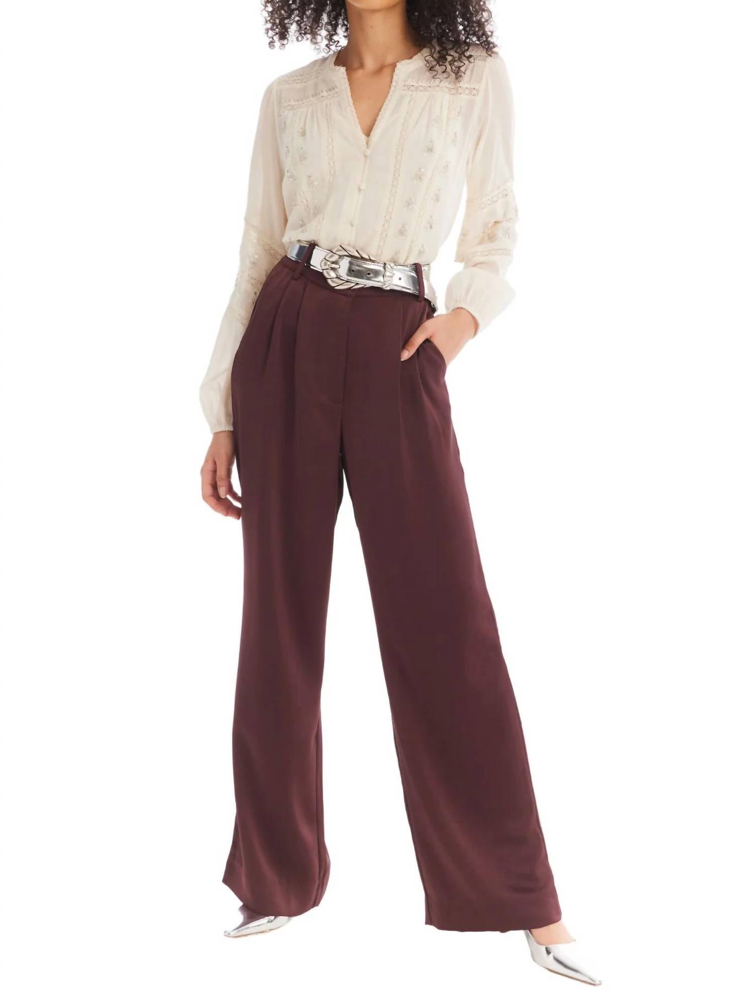 Introducing the Joan Satin Pants by ALLISON NEW YORK, a luxurious addition to your summer wardrobe in a stunning emerald shade. These high-rise, relaxed fit pants feature a wide leg style and a solid pattern, crafted in sumptuous satin for a chic look. Designed with convenience in mind, they offer a pull-on closure and functional pockets, perfect for transitioning effortlessly from workwear to a holiday party. Care is simple with hand wash instructions and a recommendation to lay flat to dry, ensuring longevity and elegance.