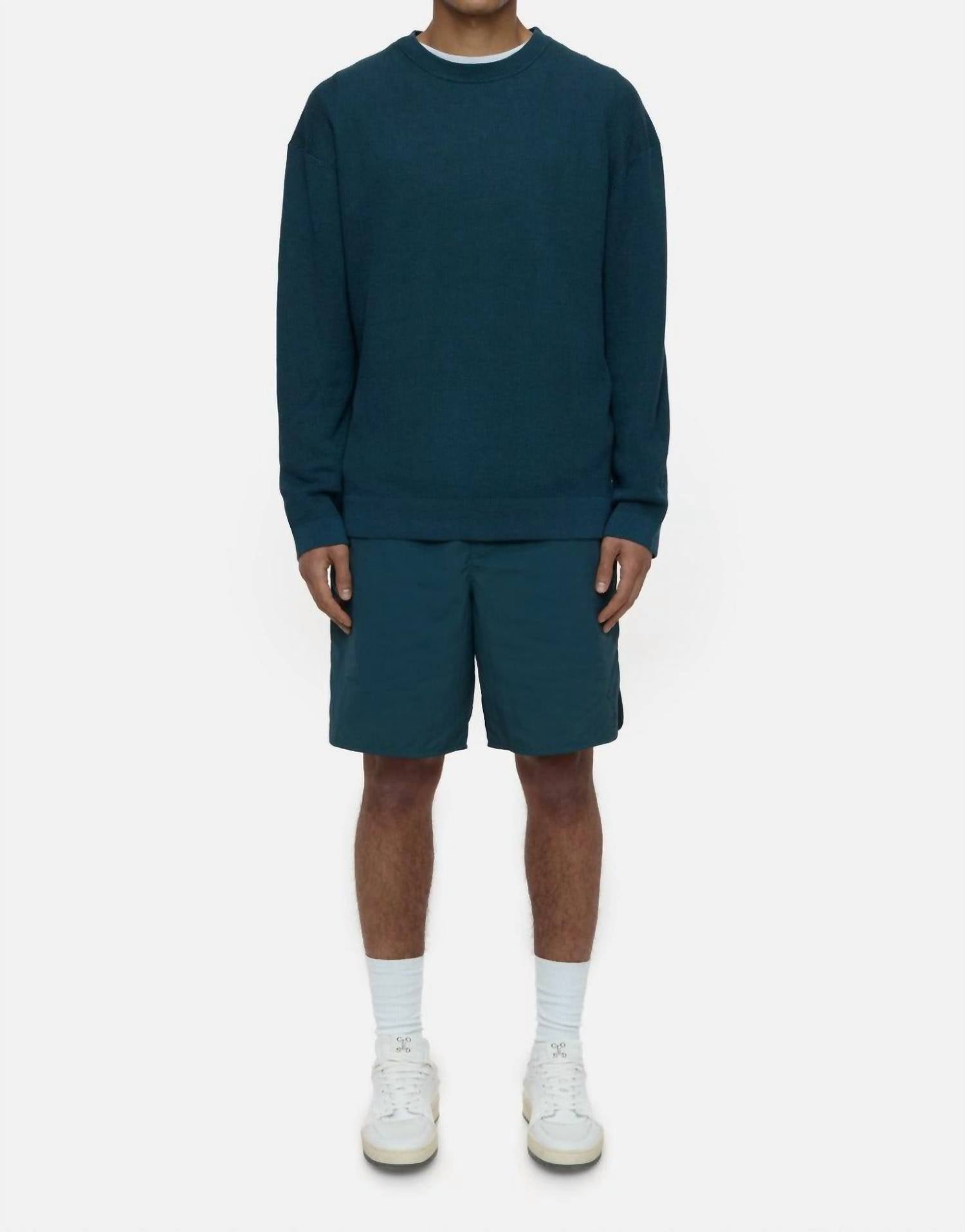 Introducing the Knitted Sweater by CLOSED, a refined addition to any wardrobe in the sophisticated Midnight Lake hue. Designed with long sleeves, this sweater showcases a premium blend of 68% organic cotton and 32% organic linen for a luxurious textured feel. It features a crewneck with a pull-on closure and boasts slightly overlapping shoulders and side slits, enhancing its minimalist and travel-ready appeal. For care, it's machine washable, making it both stylish and practical for the modern man.