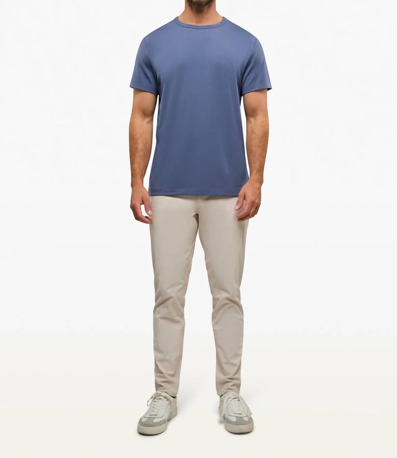 Introducing the Forever Short Sleeve Tee by CUTS in a sleek Dusk shade, perfect for a dinner party with its minimalist style. This men's tee features a classic fit with a straight-hem designed to hit between the waist and hip, providing comfort with a slightly looser silhouette. Crafted from solid Nylon, it sports a crewneck and a convenient pull-on closure. Care instructions include machine wash and lay flat to dry.