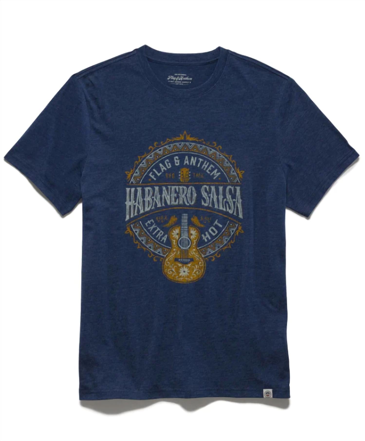 Elevate your summer style with the Flags & Anthem Habanero Salsa Short Sleeve Tee in Navy Heather, designed for comfort with its tailored athletic fit. This tee is crafted from a 58% Cotton and 42% Poly blend, and features a classic crew neckline with striking all-original graphic artistry. Measuring 28.5” in length from the highest shoulder point, it offers a relaxed yet refined look. Enjoy the practicality of machine washing and tumble drying for easy care.