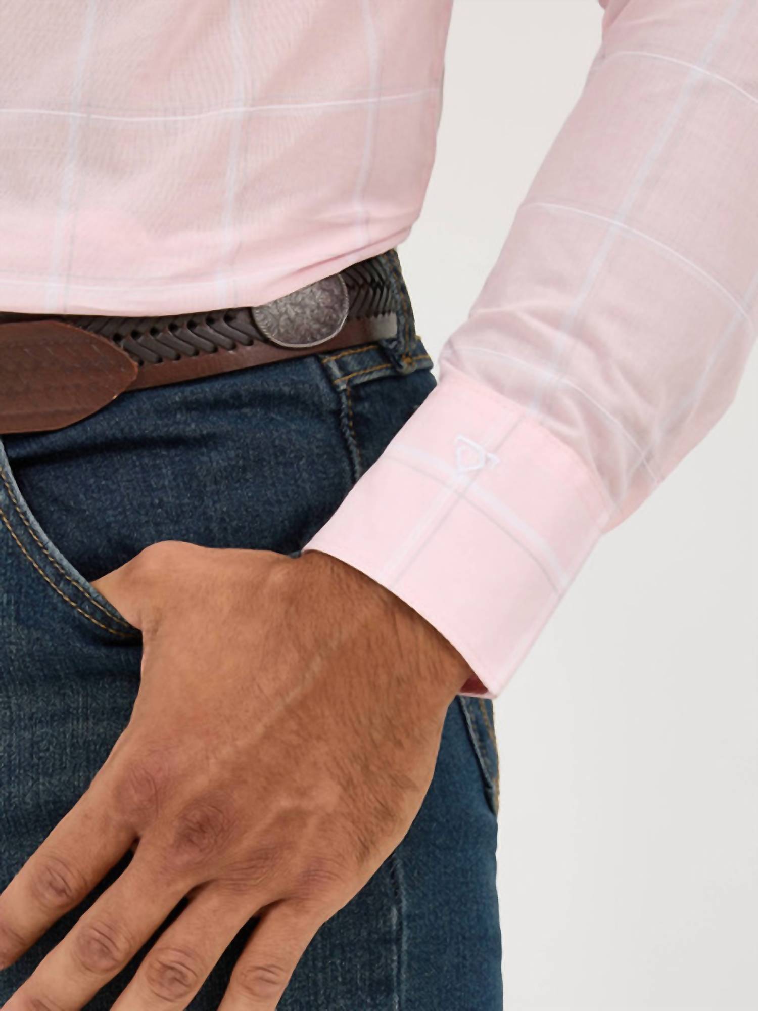 Introducing the Cody Johnson Long Sleeve Plaid Shirt by Wrangler, a quintessential piece for any western wardrobe. Crafted from 100% cotton, this shirt offers airy comfort with long sleeves and a hidden button-down collar. It features a single chest pocket and mitered cuffs, adorned with Cody Johnson's signature logo. With its button closure and classic fit, care is a breeze with machine wash and tumble dry instructions.