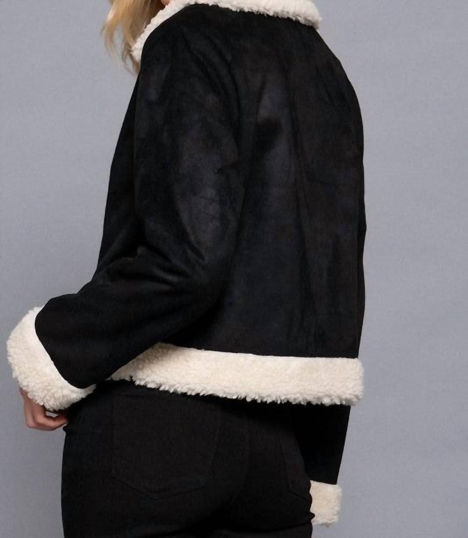 Introducing the Faux Biker Jacket by Active USA, a chic choice for the modern woman. This solid black leather jacket boasts a stylish collar and long sleeves, complete with a luxurious fur lining for added warmth. Its sleek design is complemented by a practical zip closure. Lined for comfort, this piece seamlessly combines style with functionality.
