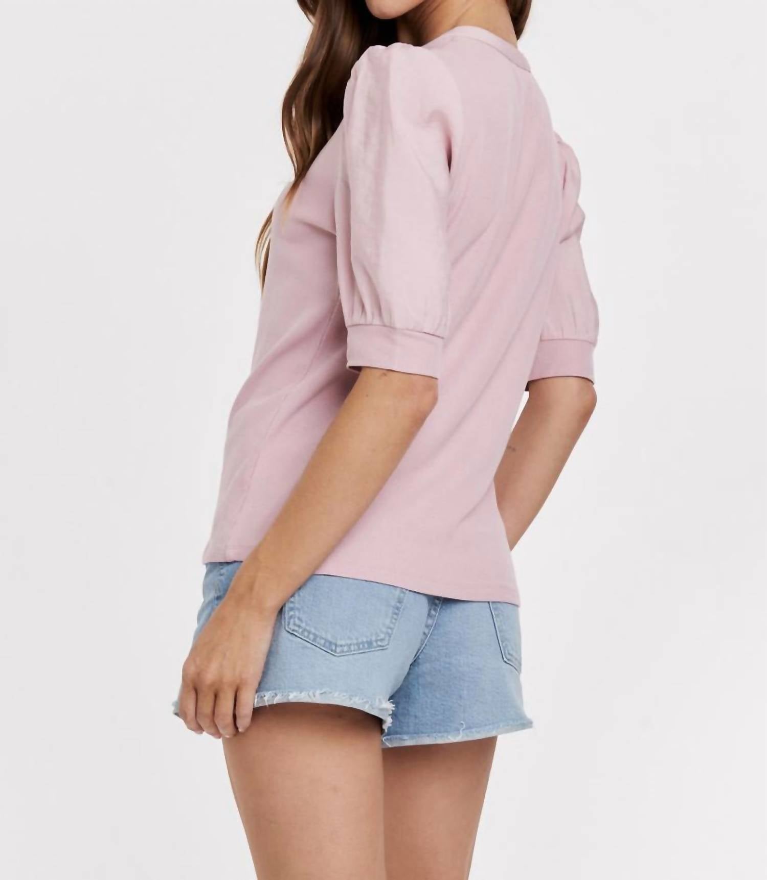 A versatile blouse that works from desk to dinner! The Tanner Puff Sleeve Top by Another Love in Rose Smoke is an essential piece for any minimalist wardrobe, perfect for spring and Thanksgiving occasions. This top features short elbow puff sleeves with cuffs and a stylish Henley finish with a button closure for added sophistication. Made from a soft blend of 93% Rayon and 7% Spandex, it is designed for ultimate comfort. Care instructions include machine wash cold and tumble dry low. Available in sizes Small to XLarge, this blouse offers a true-to-size fit with a crewneck for a classic look.