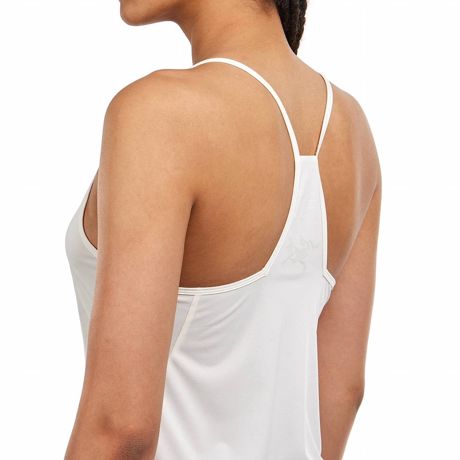 The Silene Tank Top by Arc'teryx is a versatile activewear piece designed for women who value mobility and comfort during summer fitness activities. Featuring spaghetti straps and a scoopneck, this tank top is made from 100% polyester with Phasic FL fabric for exceptional moisture management and breathability. Its pull-on style showcases lightweight and low-profile seam construction that minimizes bulk and enhances comfort, suitable for workouts. Care for this tank by machine washing it and tumble drying, making it ideal for those seeking easy maintenance.