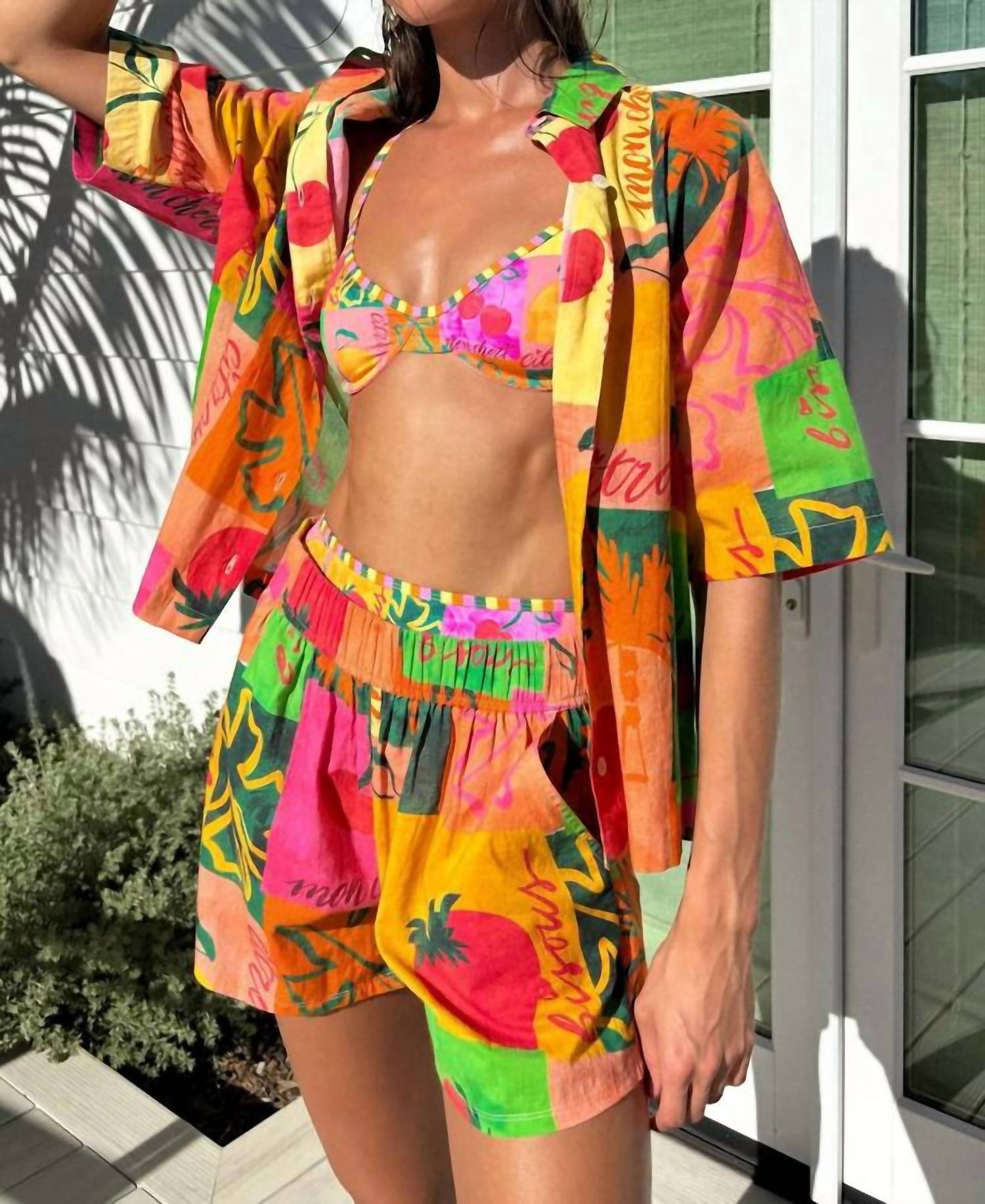 High-waist is here to stay and we especially love this style short. Add a splash of vibrant style to your summer wardrobe with the Rayah Pull-on Short from Beach Riot. Designed for effortless wear, they feature a relaxed fit with an elastic waistband and handy side pockets. The multicolor fruit print in 100% cotton makes it ideal for a breezy vacation or holiday celebration. Crafted without fuss, they boast a pull-on design and are easy to care for with a machine wash and line dry routine.