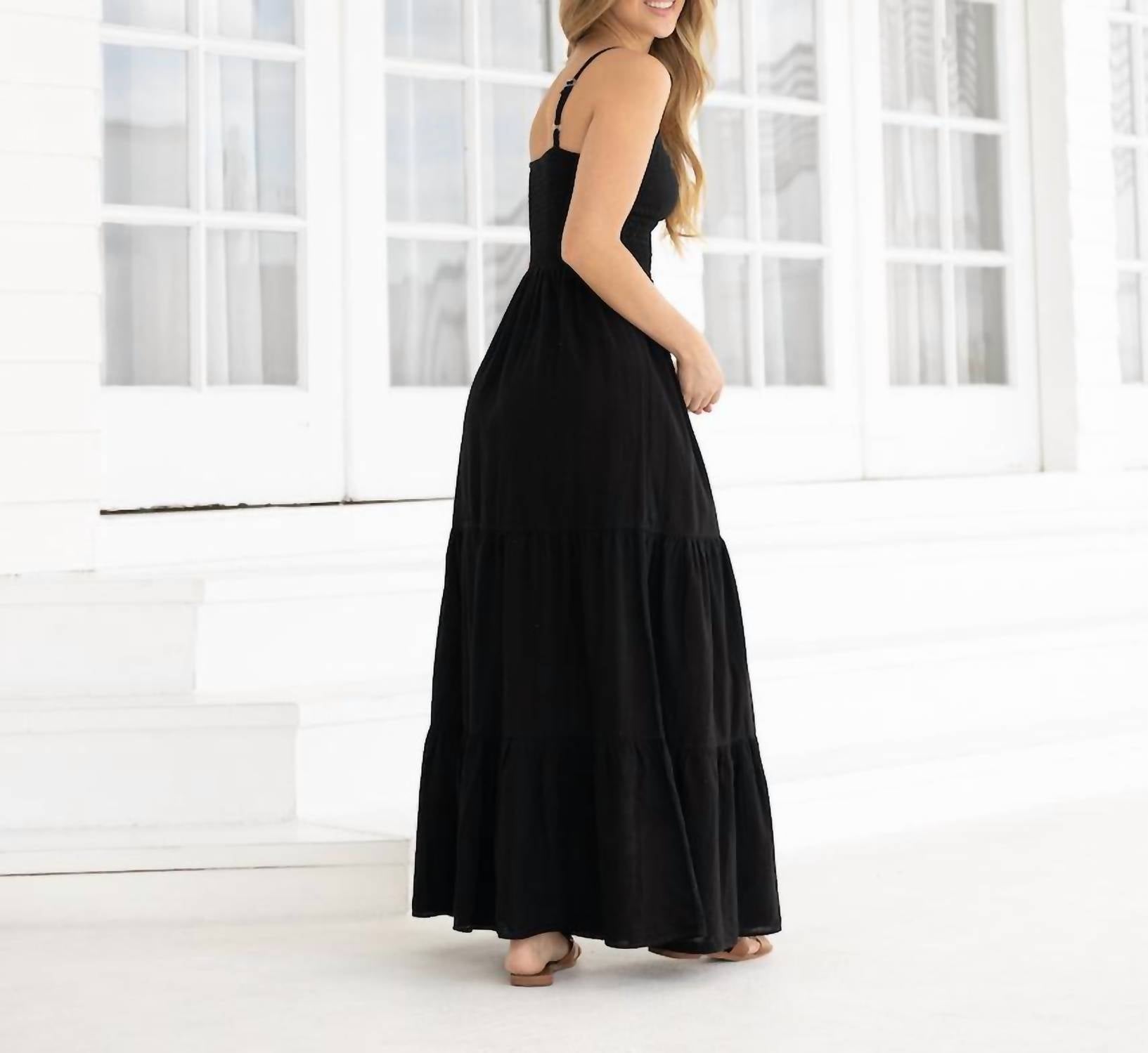 A maxi dress that is just as cute as it is comfortable. Introducing the Nayla Keyhole Maxi Dress by Blanco BY NATURE featuring delicate spaghetti straps, crafted from 100% cotton for comfort and breathability, extending to a luxurious maxi length. Designed with a pull-on closure, it showcases a ring at the center bust, adjustable straps, cutout detail, an elastic waist, and a ruched trimming detail on the skirt for a flattering fit. Care instructions recommend machine washing cold with like colors, avoiding bleach, and hanging to dry.