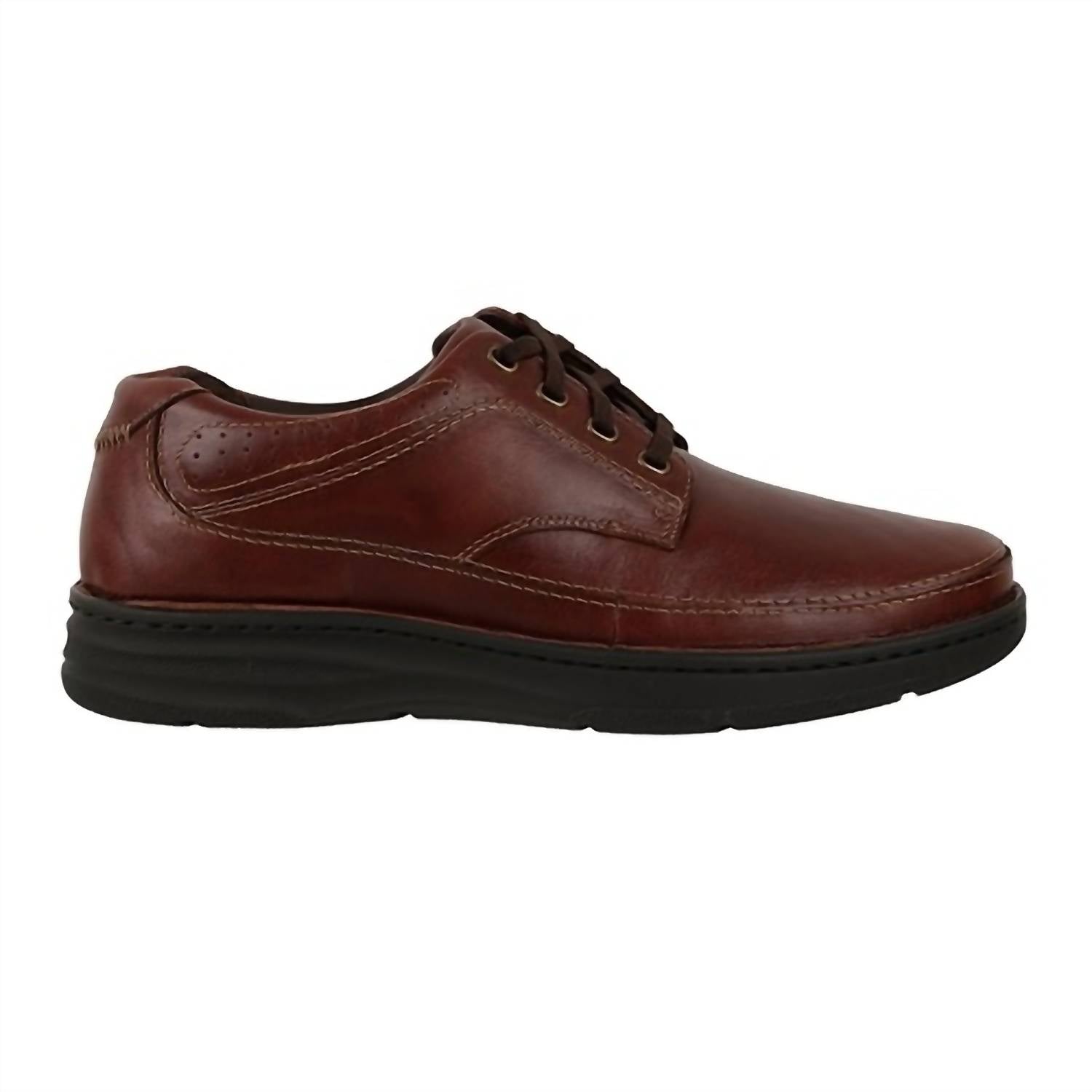 Step into comfort and style with the Men's Toledo Casual Shoes by Drew Shoes, an ideal choice for workwear or evening events. These Oxfords & Derbys in sleek Brandy Leather are crafted for ultimate foot health, featuring the Plus Fitting System® with two removable footbeds for customizable depth. The shoes are made with Opanka construction and a lightweight polyurethane outsole with a rocker bottom, ensuring stability and support with a tempered steel shank. The Drilex® and leather lining, along with a soft, foam-padded tongue and collar, accommodate prescribed orthotics for a perfect fit.