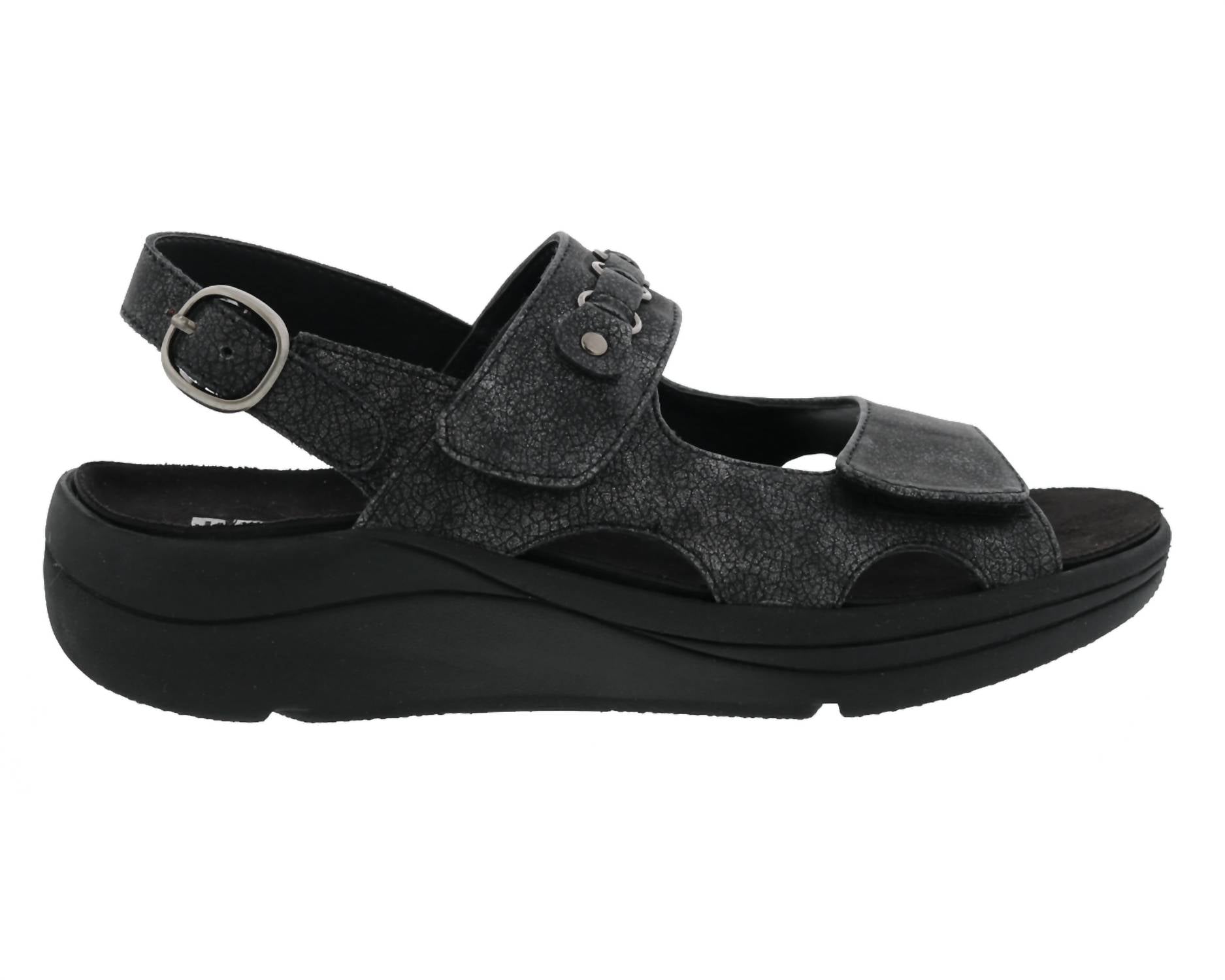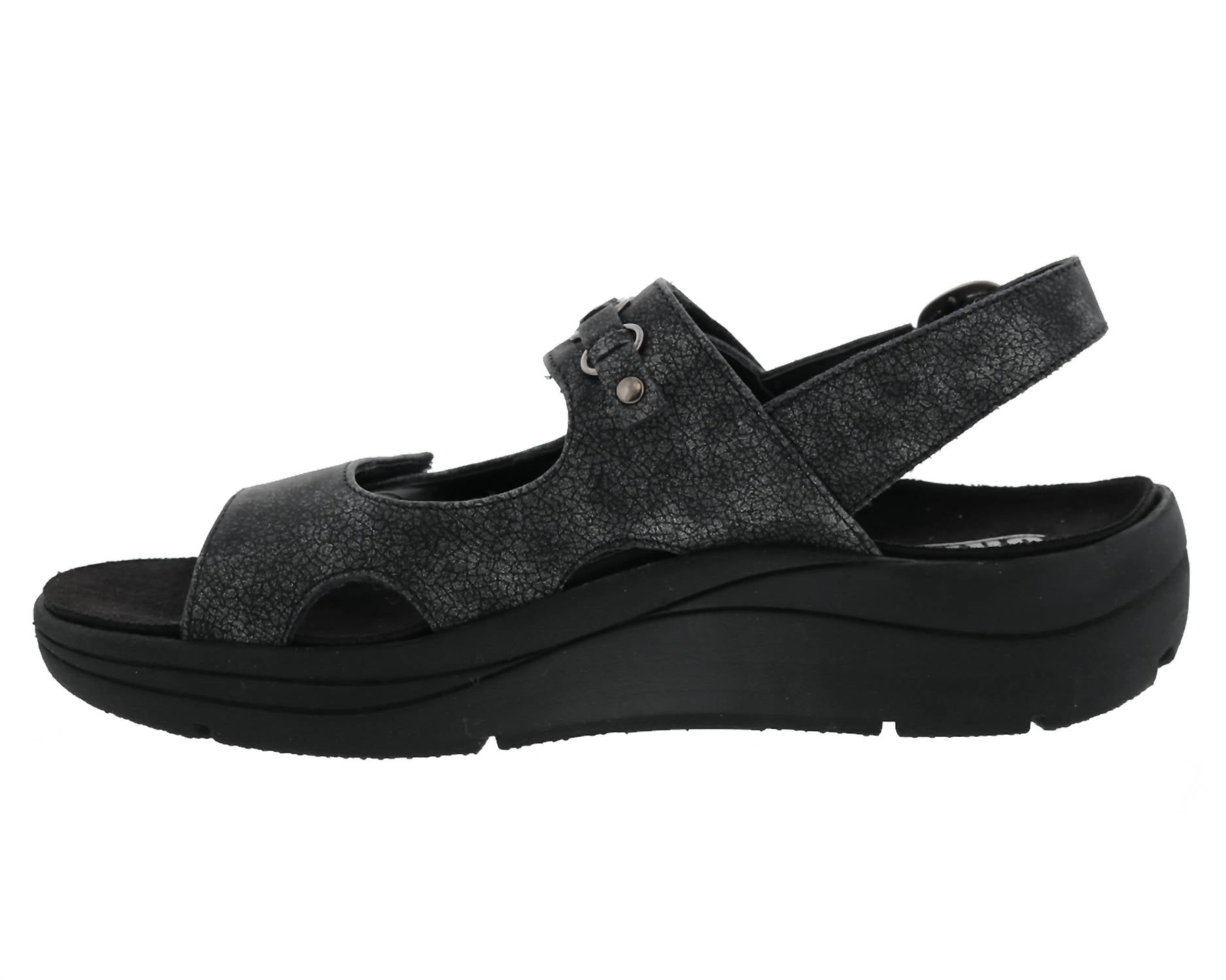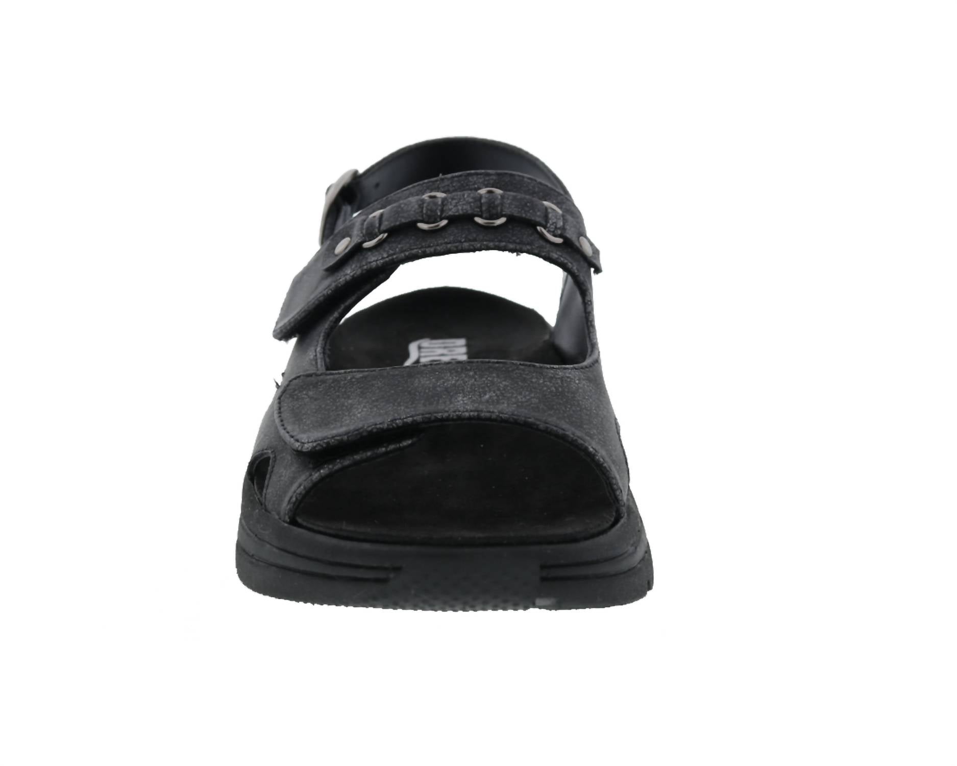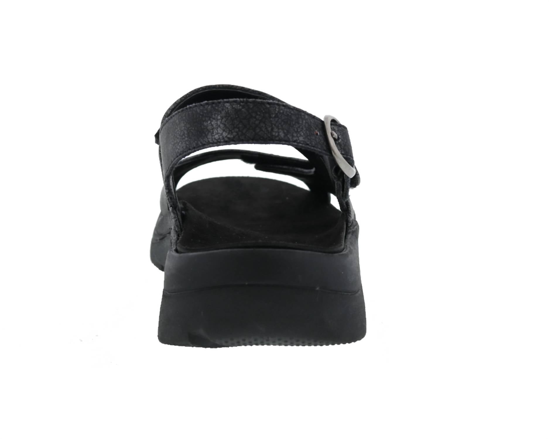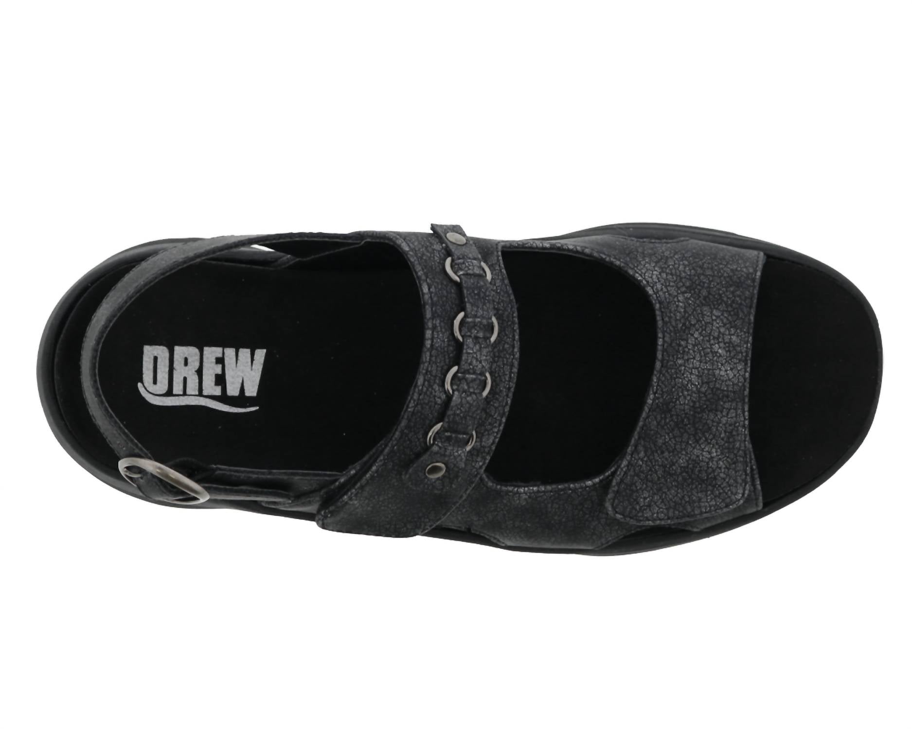 This sandal will take you from brunch to dinner and everything in between. Experience unmatched comfort with the Women's Selina Sandals by DREW, crafted in elegant black leather. Designed with two adjustable hook-and-loop straps at the forefoot and an adjustable buckle ankle strap for a perfect fit, these sandals ensure ease of wear. The high-rebound EVA midsole offers exceptional shock absorption, complemented by a cushioned EVA insole and a sturdy nylon shank. With a rubber outsole and rocker bottom, these sandals are perfect for accommodating prescribed orthotics, providing both style and support for women.