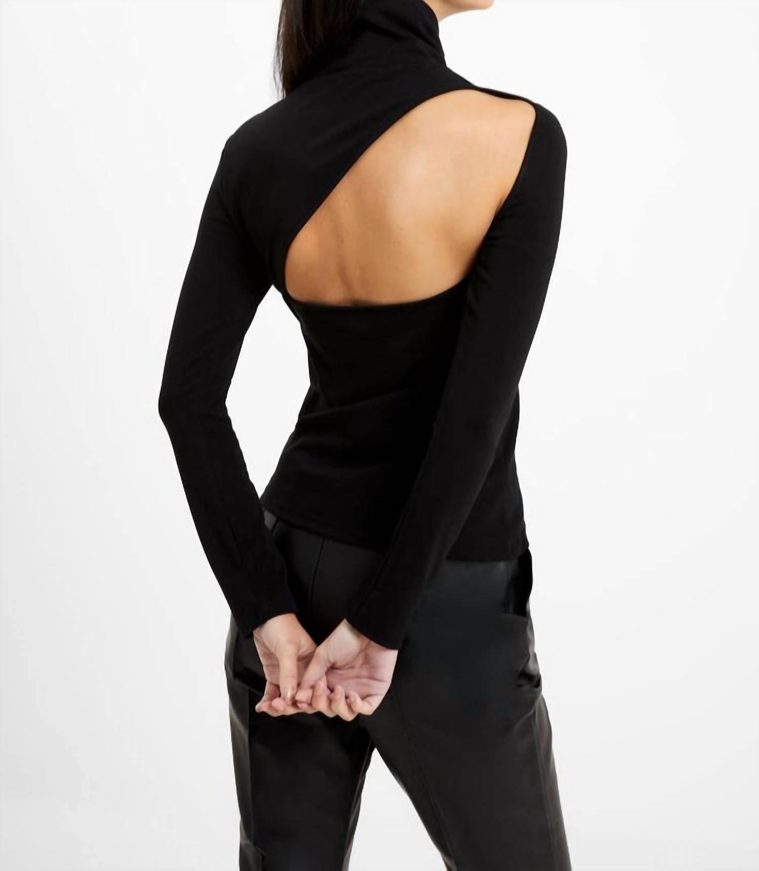 A timeless blouse that will never go out of style. Elevate your wardrobe with the Roy Viscose Top by FRENCH CONNECTION, a stunning piece in classic black. This women's blouse showcases long sleeves and a chic turtleneck, crafted from luxurious viscose. Designed without closures, the pull-on style is enhanced by its captivating asymmetrical back cut-out. Care for this solid pattern top with ease through machine washing.