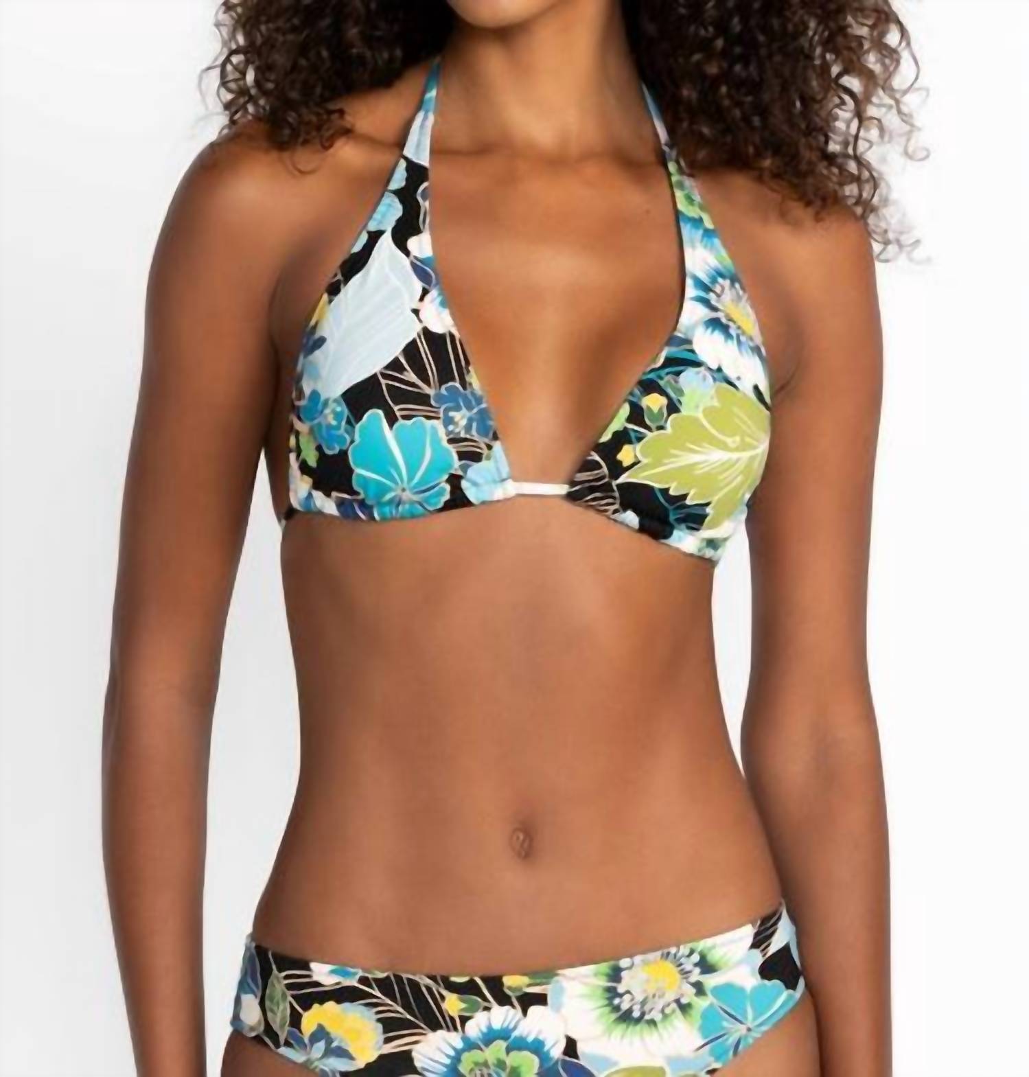 The Jenn String Bikini Top brings a classic swim silhouette back to life, making it perfect for poolside lounging. Featuring a lined triangle cut with removable cups, this swim top ties at both the neck and waist for a customizable fit. Pair it with the Jenn String Bikini Bottom and an open button-down shirt for a stylish day soaking up the sun.