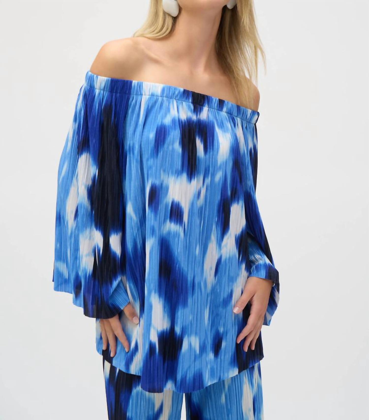 This is a chic addition to your wardrobe in a captivating tie-dye pattern. This women's top features long sleeves and a stylish off-the-shoulder neckline, offering both comfort and flair. Care for this piece with convenience by machine washing and laying it flat to dry. Perfect for those who seek effortless style without compromising on elegance.