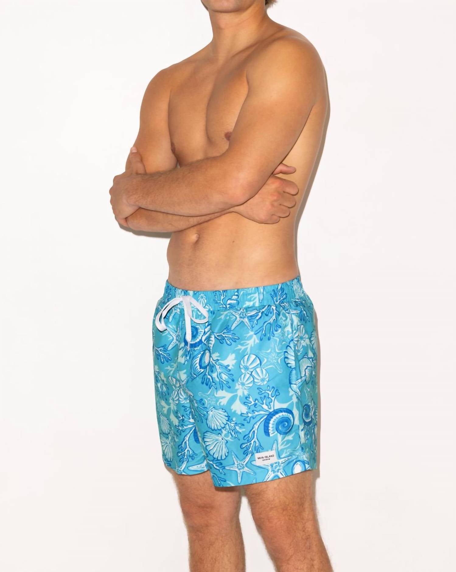 Dive into summer with the Kulani Kinis Men's Swim Trunks in Blue Lagoon, perfect for a stylish beach day. These patterned swim trunks offer full coverage and are unlined for a lightweight feel. Made for the sunniest season, they embody both comfort and style for your summer adventures. Origin details are not specified, and care instructions are unspecified, making them easy-going staples for your wardrobe.