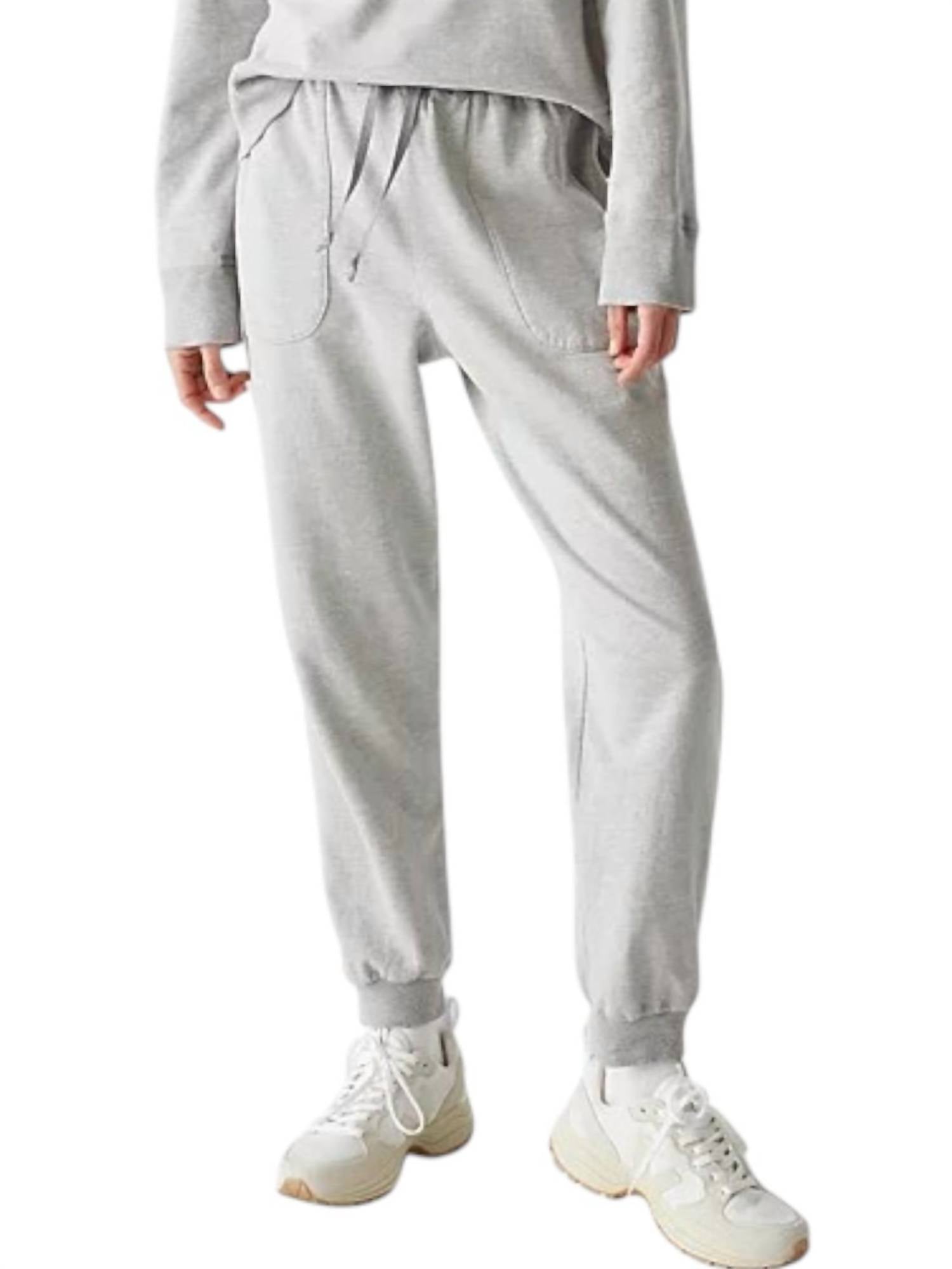 Pull-on style with front waist drawstrings. Side-seam pockets at hips. Jogger-leg silhouette. Ribbed hem. 100% cotton. Machine wash.
