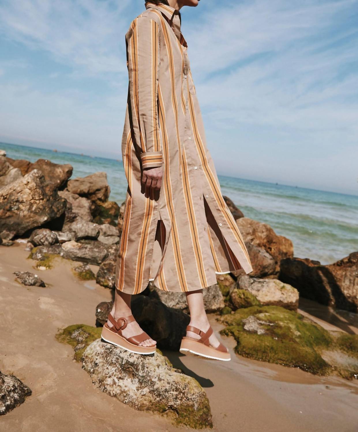 This sandal will take you from brunch to dinner and everything in between. Step into the perfect blend of style and comfort with the Women's Crepe Platform Sandal by NAOT. Crafted in soft leather, this sandal features a 2.2" wedge heel and a 1.5" platform for an elevated yet stable stride. Its anatomic cork and latex footbed, wrapped in suede, molds to the foot for a personalized fit, while being APMA accepted for promoting foot health. Designed for women with a medium to wide width, these sandals ensure a true-to-size fit and are perfect for your next outing.