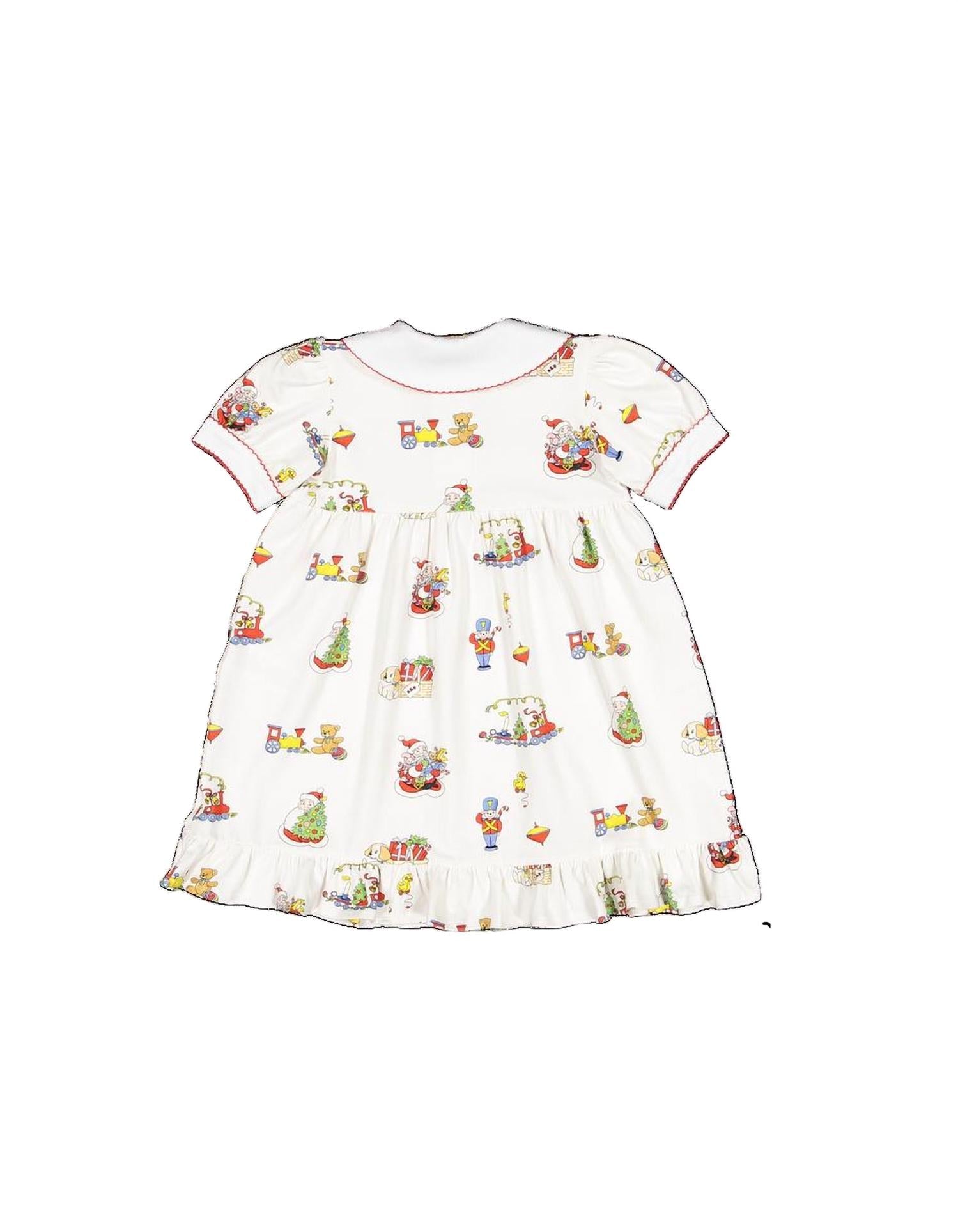 The perfect Christmas eve pajamas from Sal & Pimenta. The Peter Pan collar and the exclusive Christmas Toy print make this the sweetest nightgown to wake up in on Christmas morning.