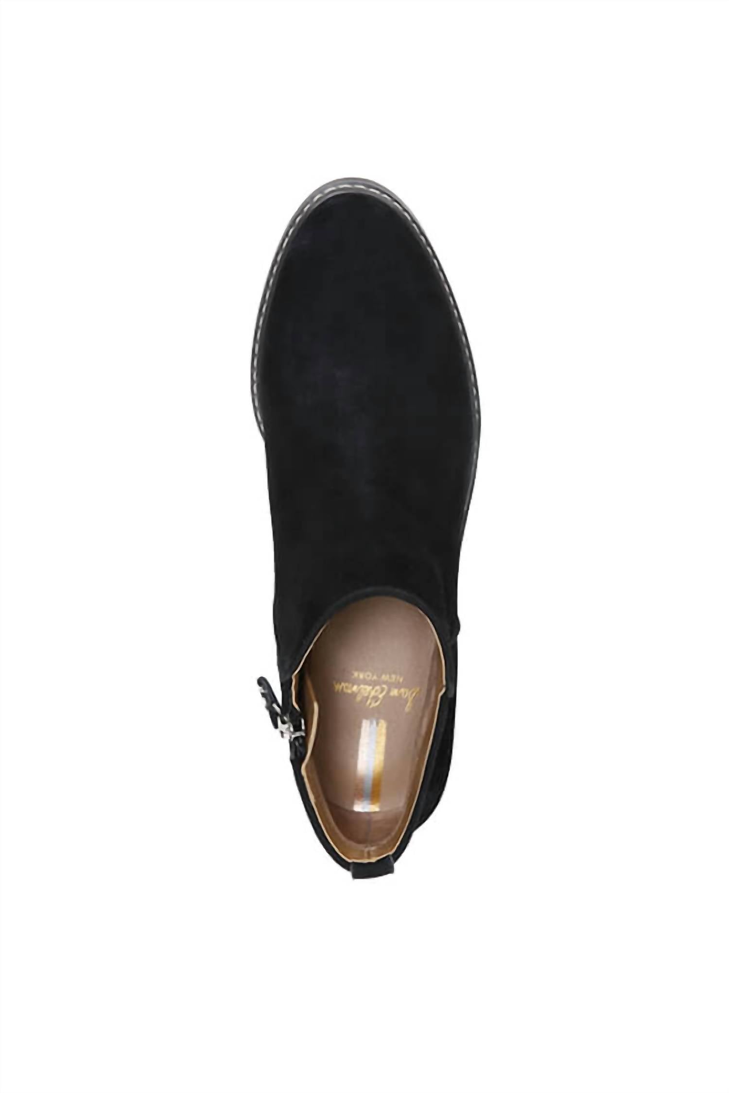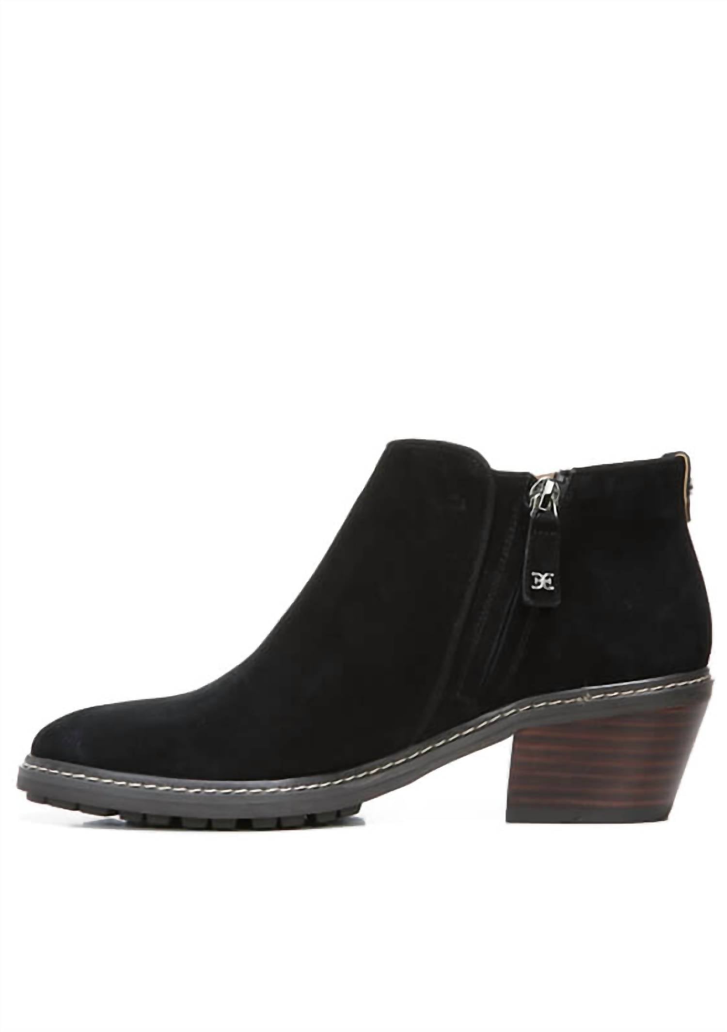 Say hello to the perfect, most versatile boot. The ankle height makes this style easily transition from day to night. Wear them with your favorite skinny jeans and tee for a more laid back look, or pair them with your favorite mini dress and jacket for a night out on the town. Crafted from luxurious black suede leather, this bootie features a convenient zipper closure and a round toe for a classic look. With a low block heel height of 1.7 inches and a boot shaft of 3.1 inches, it ensures a comfortable fit with an 11-inch calf circumference. Embrace practicality and style with its durable synthetic insole.