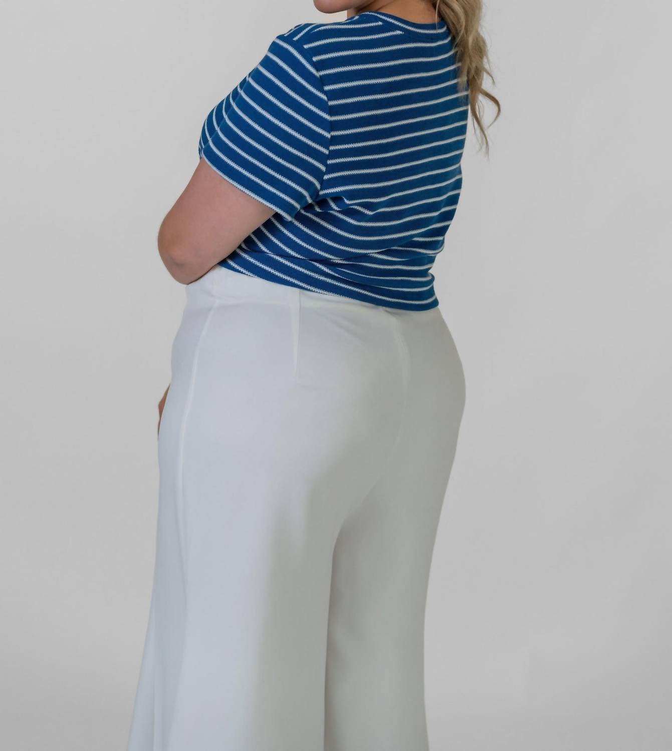 The Zola Crew Neck Short Sleeve Top by TANYA TAYLOR is a stylish piece for your summer wardrobe, offered in a striking Medium Oxford Blue with a stripe pattern. Made from 100% Cotton, this plus-size tee promises both comfort and style. Designed with a crew neckline and a pull-on closure, it features a flattering twist at the waist for a fun upgrade. Care for this women’s top is simple: machine wash and tumble dry.