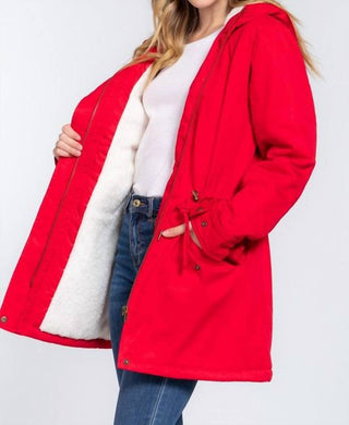 Active Usa - Fleece Lined Fur Hoodie Utility Jacket