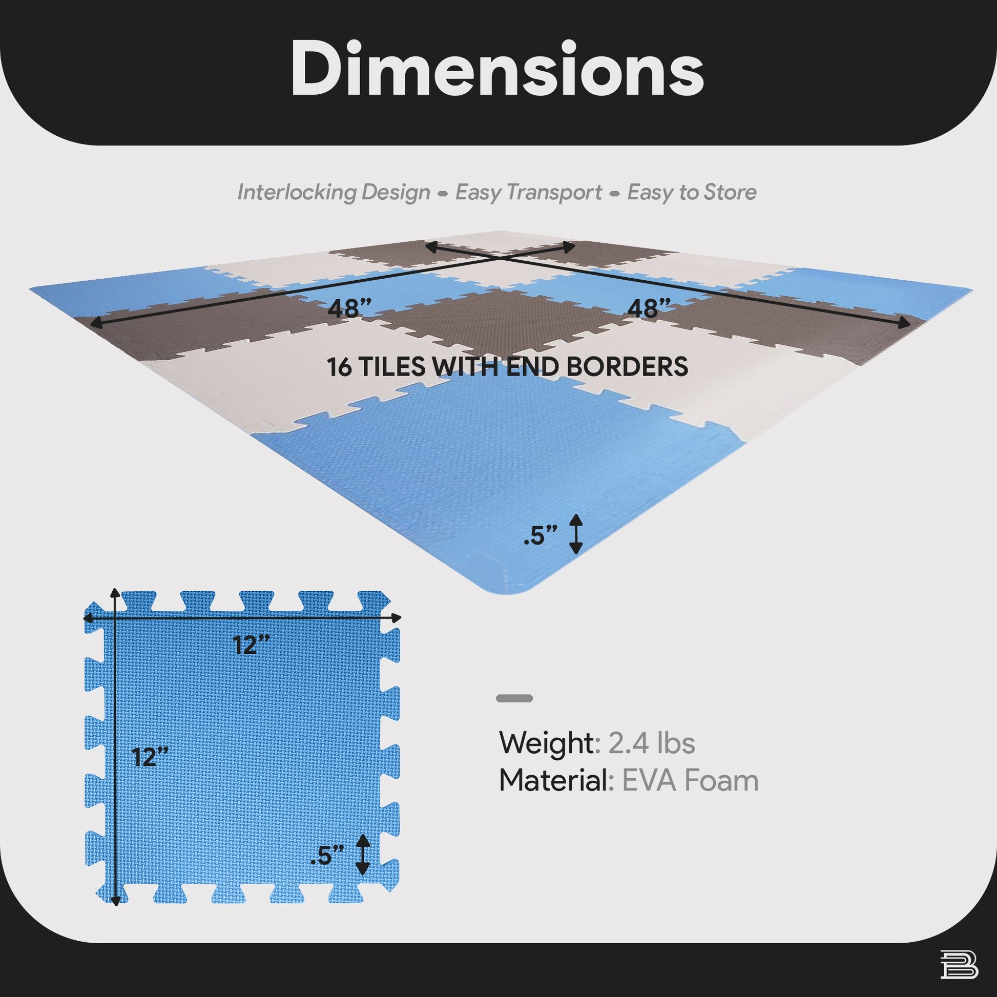 BalanceFrom Fitness 16 Tile Thick Interlocking Puzzle Foam Exercise Play Mat