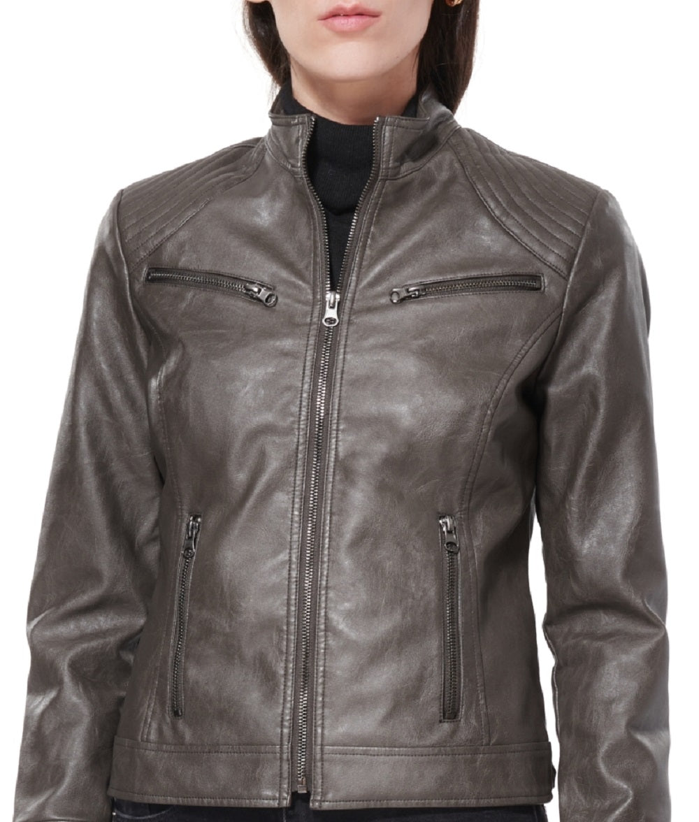Unleash your inner biker babe in this moto-inspired jacket from Maralyn & Me designed in sleek faux leather and finished with four zippered pockets at the front|
