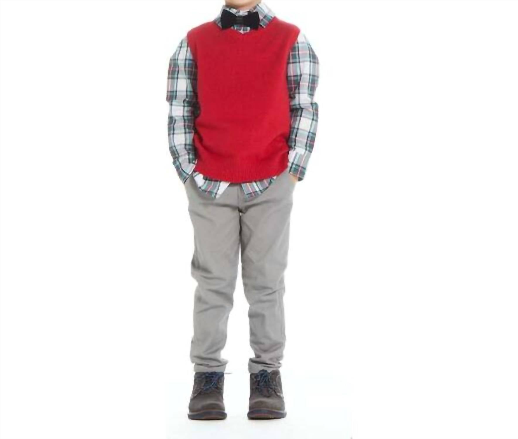 The Boys Holiday Button Down and Pant Set by Andy & Evan is crafted from 100% cotton, ensuring comfort and style for your little one during festive occasions. This multi-colored matching set is machine washable, with care instructions recommending a cool iron from inside if needed and a medium tumble dry, but do avoid bleach and dry cleaning. Perfect for your child's holiday wardrobe.