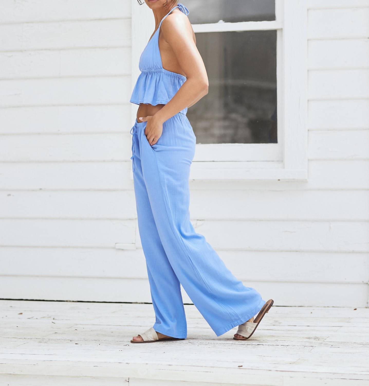 A perfectly tailored straight leg that you'll want in every color! Introducing the Kelly Drawstring Pants by Blanco BY NATURE, your go-to choice for chic beachwear. Crafted from lightweight cotton in a textured design, these straight-leg pants offer a relaxed fit and feature convenient pockets. With an adjustable elastic drawstring, they provide versatile waist styling. Closure: Pull-on style. Machine wash cold, do not bleach, line dry.
