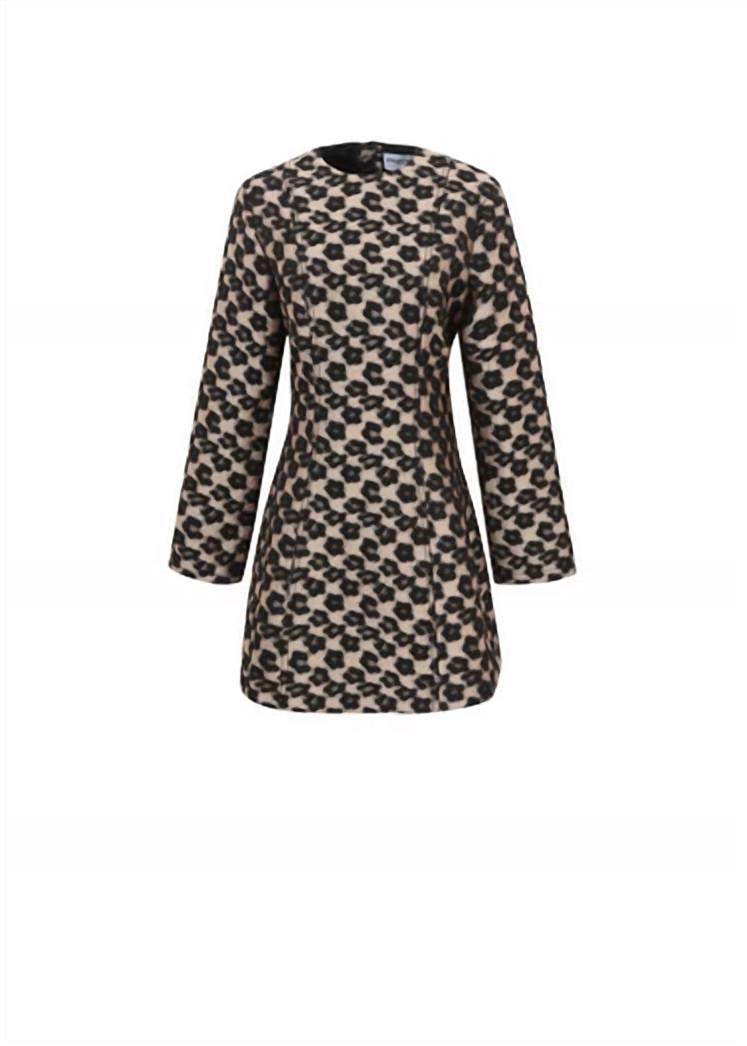 Embrace effortless elegance with the Letezia Mini Dress by FRNCH, perfect for a sophisticated dinner party. This shift dress features long sleeves and a chic crewneck, showcasing a trendy leopard pattern. Crafted from a cotton blend of 74% Polyester and 26% Cotton, it embodies the essence of quiet luxury. Available in a mini length, it seamlessly fits into your fall wardrobe.