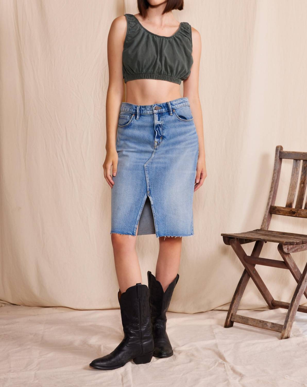 The perfect crop top for those warmer weather days. Introducing the Maria Top by People of Leisure, a sleeveless crop top crafted from 100% organic cotton designed for warm-weather style and comfort. This solid Forest Green piece features a pull-on closure and a scoopneck, effortlessly merging minimalist fashion with eco-awareness. Perfect for summer travel, its gathered details and elastic hem create a flattering silhouette ideal for high-waisted jeans or a flowy skirt. Originating from a commitment to sustainability, this top is machine washable and can be tumble dried, though initial separate washing is recommended due to its unique dye characteristics.