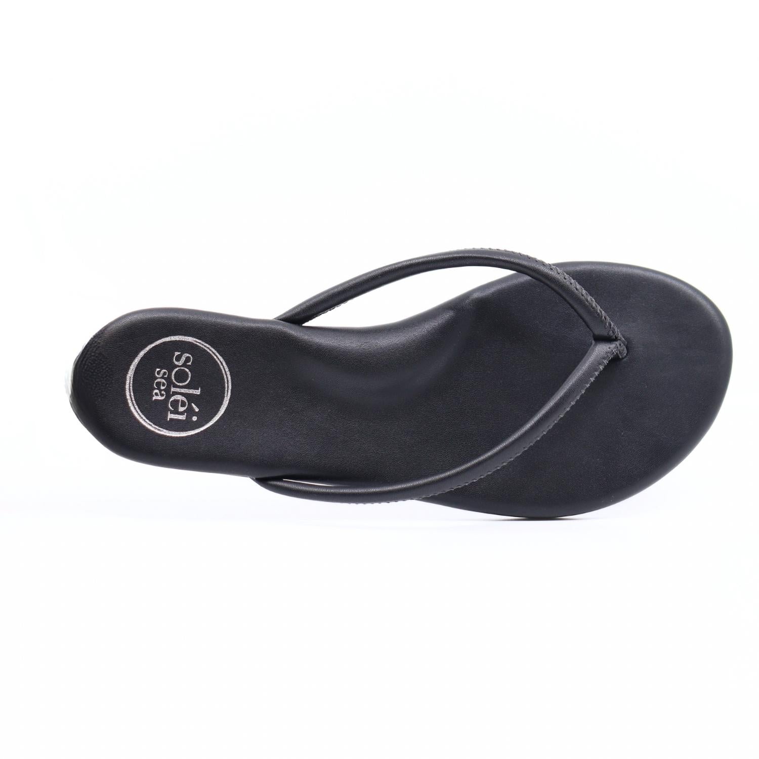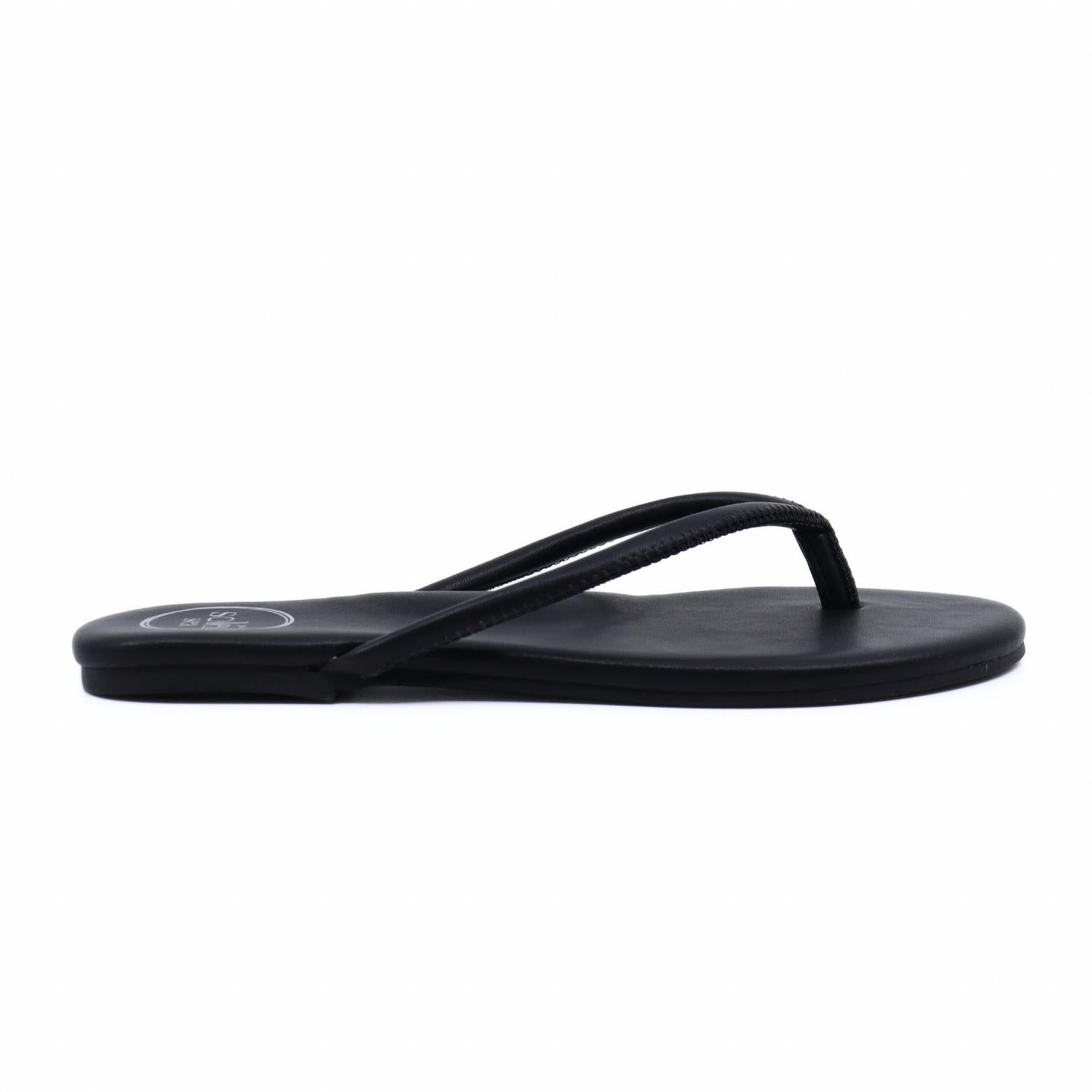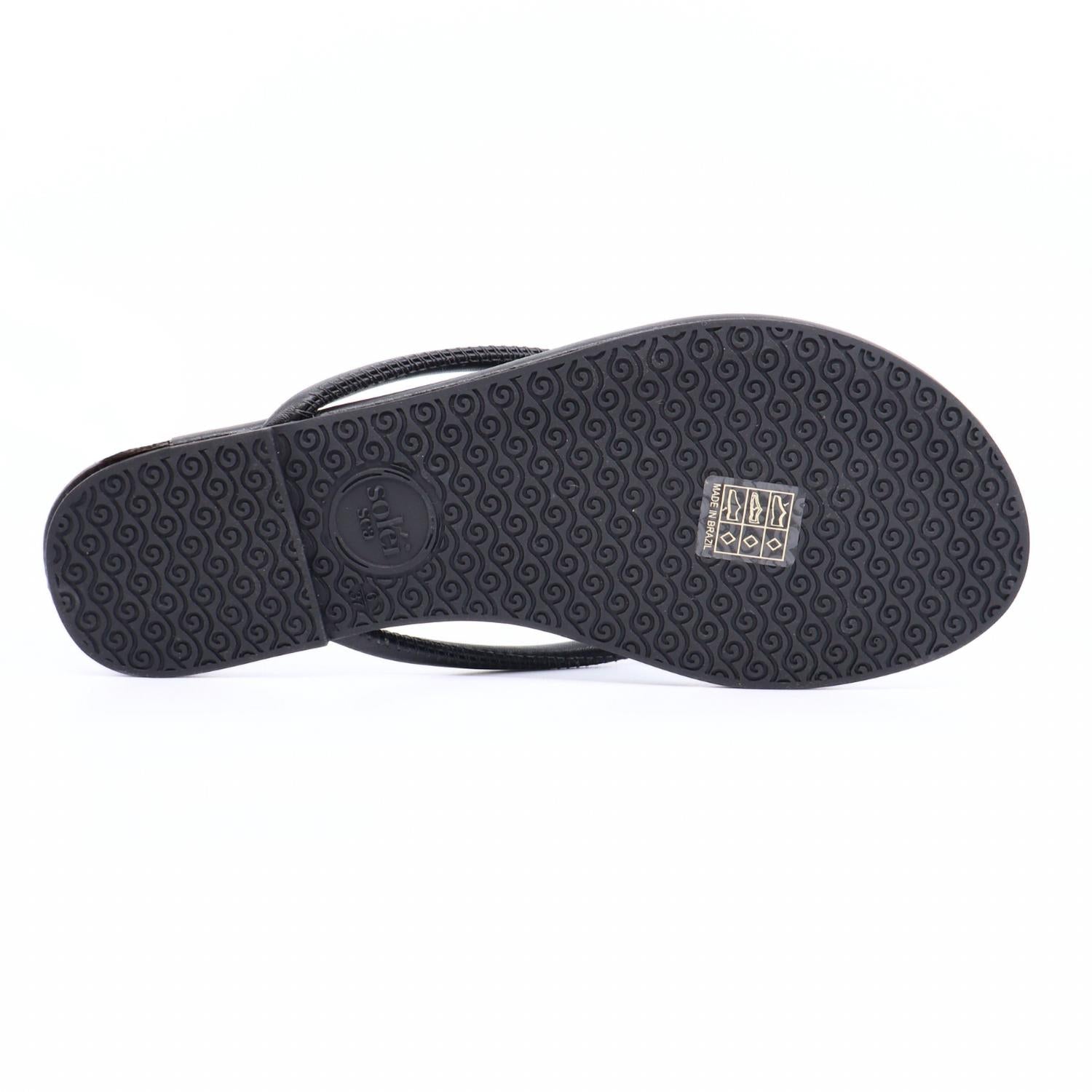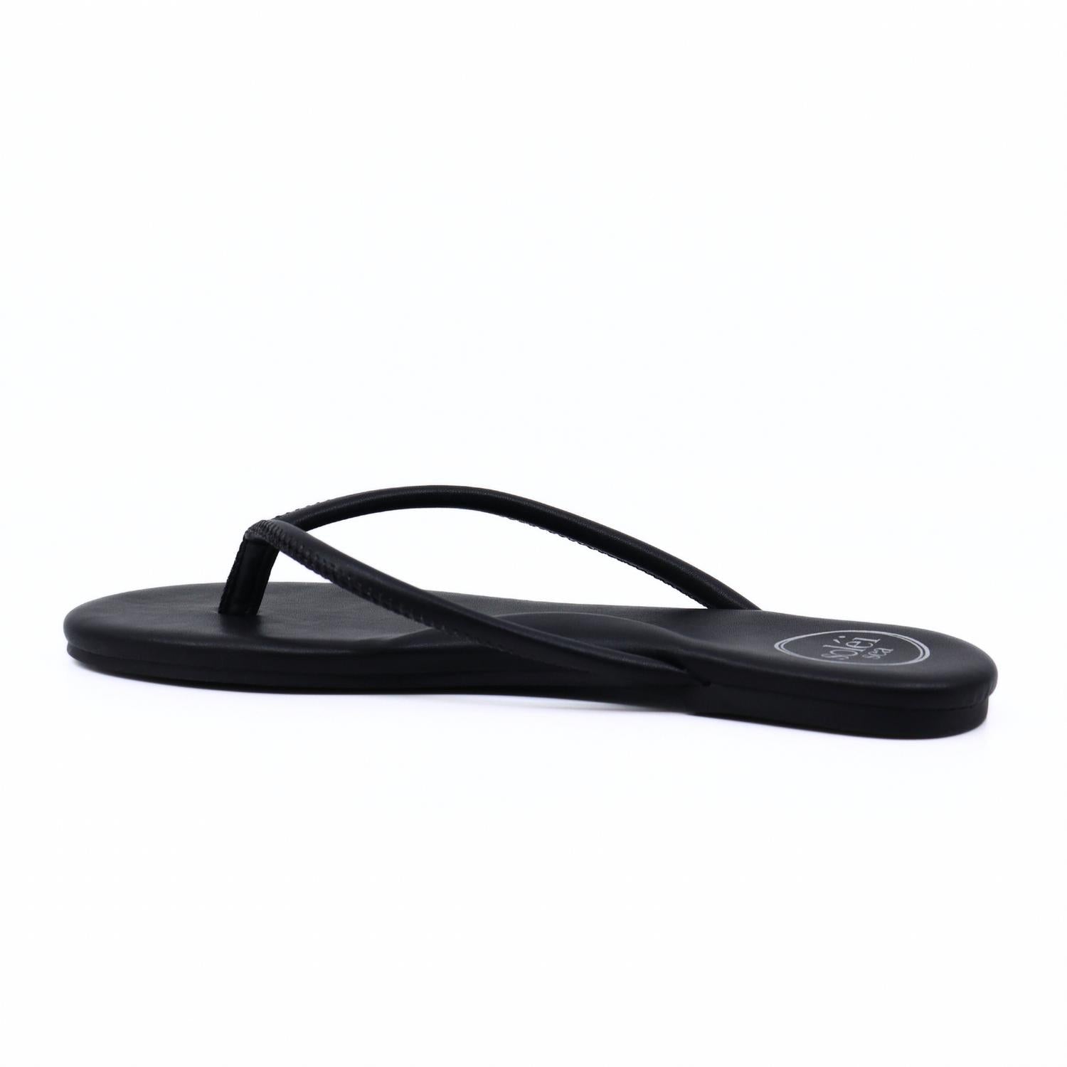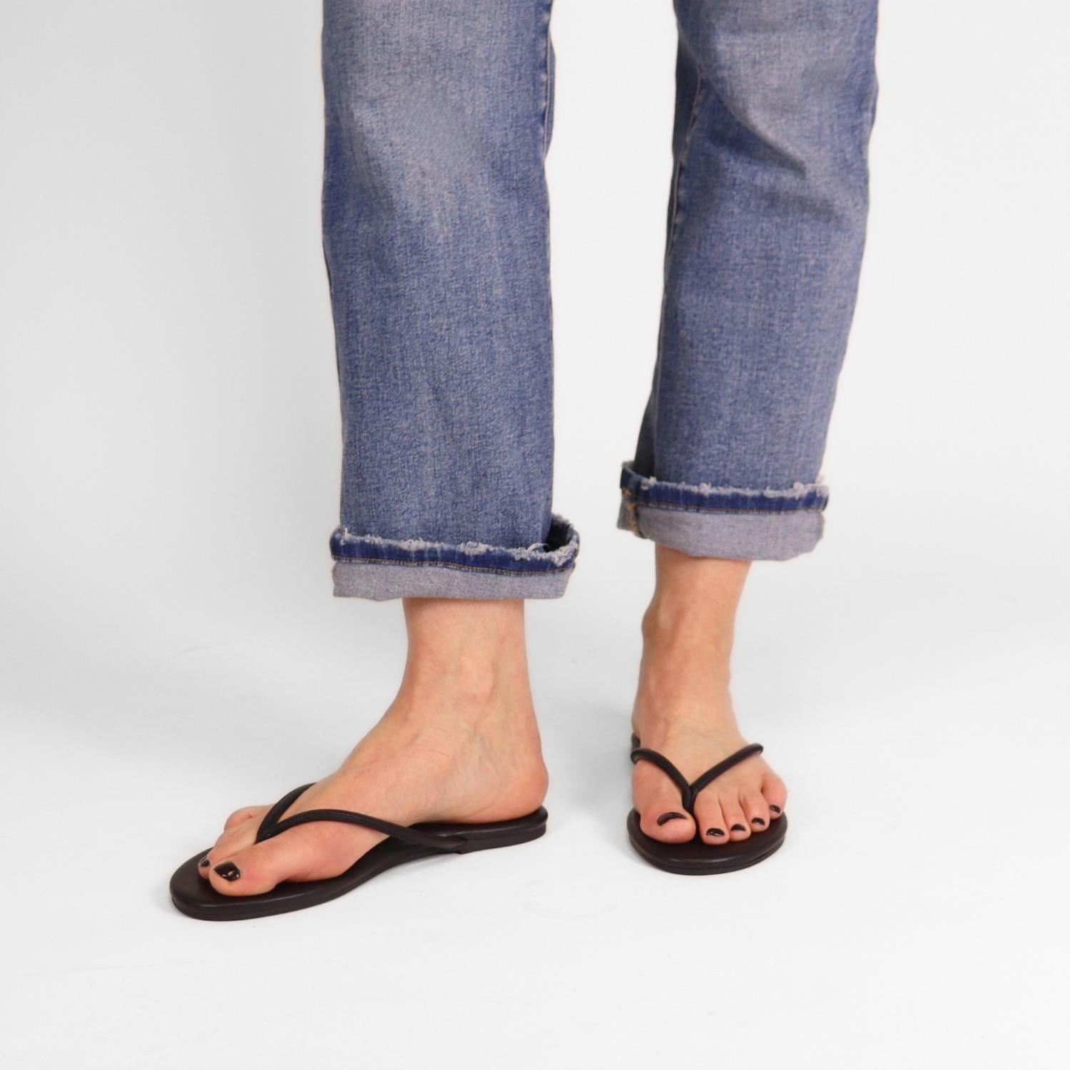 This sandal will take you from brunch to dinner and everything in between. Step into all-day comfort with the Vivie Sandals by Soléi Sea, designed for the modern woman seeking effortless style. Crafted from supple vegan leather with a flexible rubber outsole featuring the signature wave design, these sandals are the perfect blend of elegance and practicality. Made in Brazil, the open toe thong style boasts a cushioned arch support and footbed, promising a gentle fit with each step. Ideal for summer travel, these flat, minimalist sandals in sleek black feature non-slip, water-resistant materials for versatility from brunch to vacation.