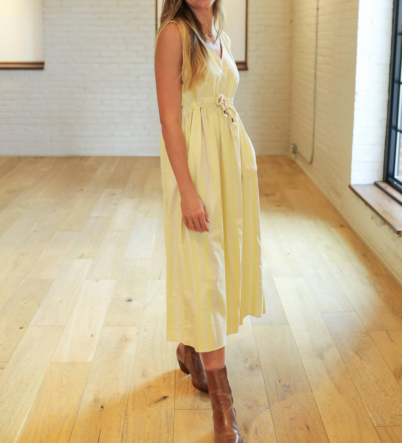 Step into summer with the Glow Drawstring V-neck Maxi Dress by SoulofMu, a vibrant yellow staple designed for sunlit days. This sleeveless, solid-patterned maxi dress combines the breathable comfort of cotton with a flattering shift silhouette. Closure: Pull-on style with convenient pockets. Care: Machine wash and tumble dry for easy maintenance.