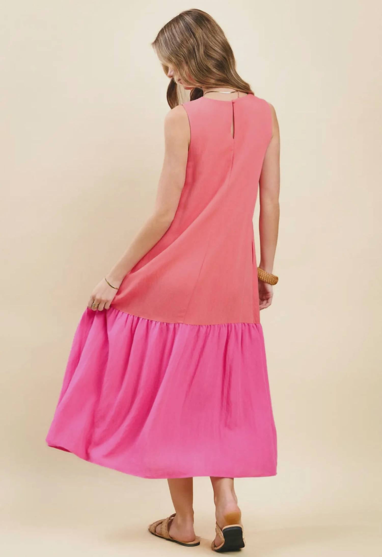 The perfect length dress does exist. Chic solid pink hue sleeveless shift dress. Features a crewneck and a stylish drop waist design, perfect for any cocktail party occasion. Expertly crafted to embody 90s fashion trends. Ensures elegance and grace. Closure is secured with a button closure. Care requires hand washing for longevity.