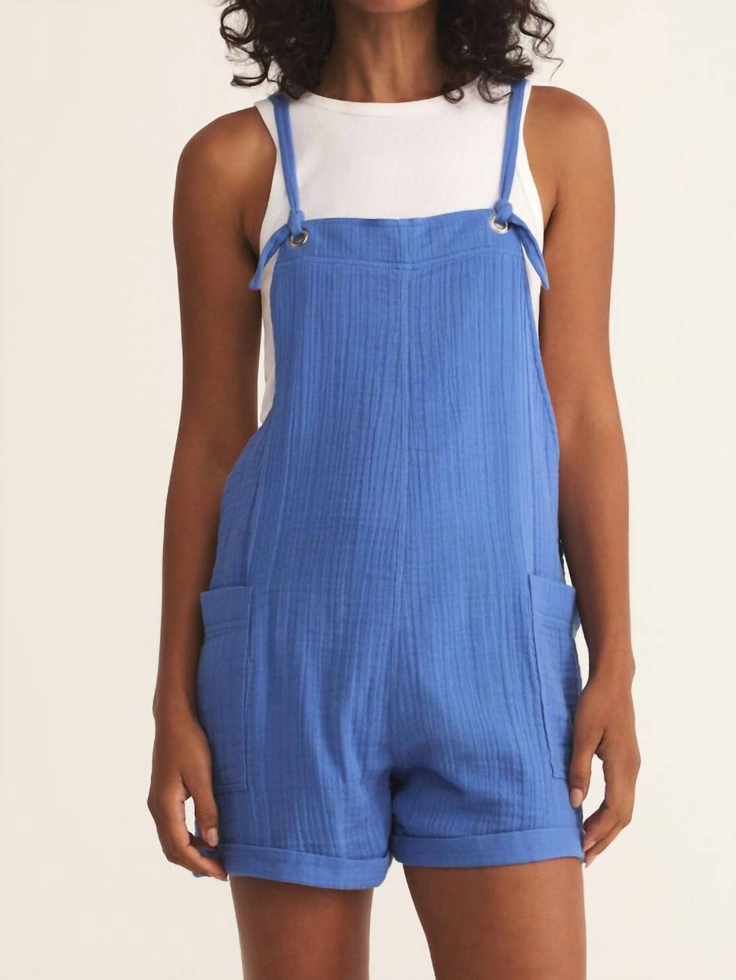 Throw it on and go! Enhance your summer wardrobe with the Montague Airy Romper by Z Supply, a streetwear-inspired essential perfect for any holiday party. This sleeveless romper showcases a high rise and a flattering ankle length with an inseam of 28.5 inches, crafted from crinkle cotton gauze for lightweight comfort. Designed with an elastic waistband featuring a tie closure, practical patch pockets, and a scoop neckline, this romper offers a regular fit in a refreshing Bay Blue. Composition: 100% Cotton.