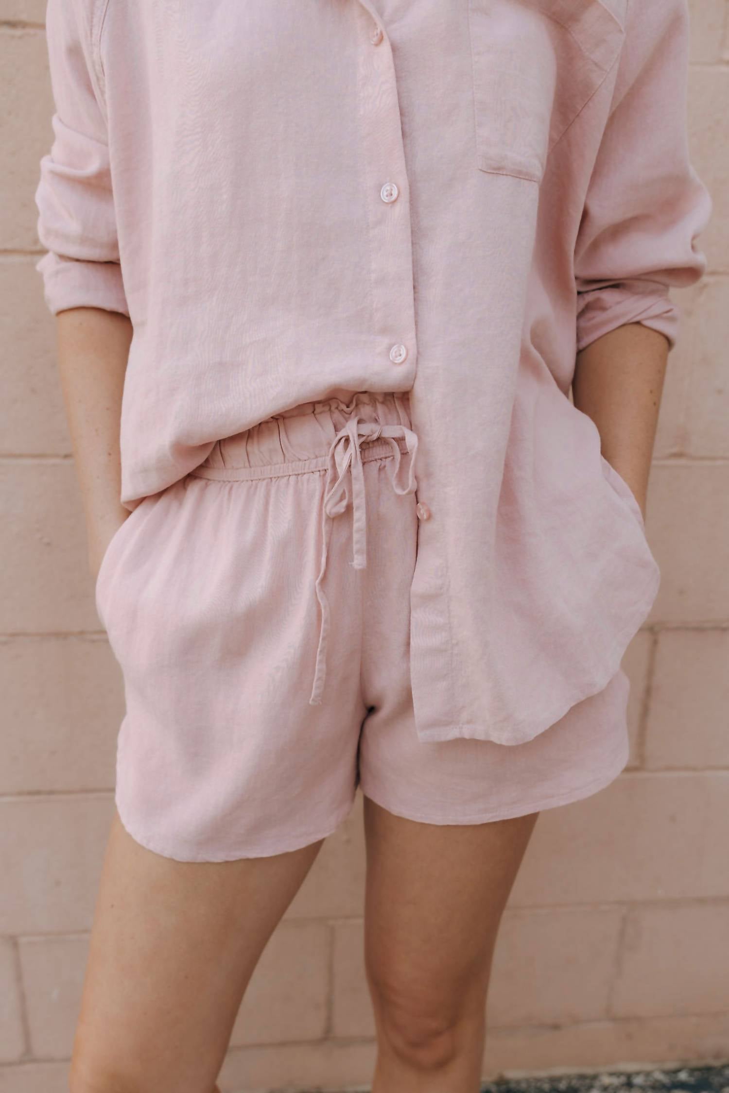 Tuck your favorite tee into these high-waist shorts for a more casual-cool feel. Introducing the Perfect Mid-high Rise Linen Shorts by Z Supply in a refreshing Salt Water hue, ideal for your next vacation ensemble. These shorts boast a blend of 55% linen and 45% rayon for a breathable, lightweight feel, equipped with a mid-high rise fit, elastic waistband, and an adjustable drawstring. Designed for versatile comfort, they feature a solid pattern and pull-on closure, complete with practical pockets. Care for this spring staple by hand washing and laying flat to dry, ensuring longevity in your athleisure collection. Measurements for size XS: 10 1/2" length, 2 1/2" inseam, 26" waist.