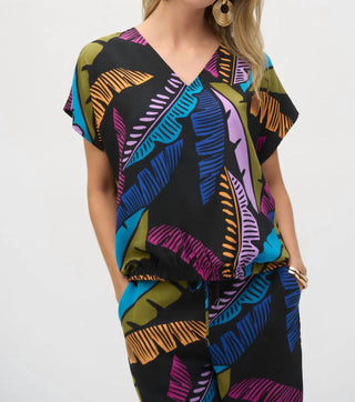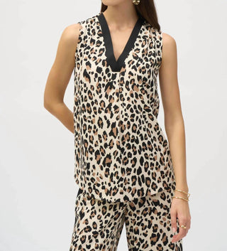Joseph Ribkoff - Animal Print V-neck Sleeveless Top