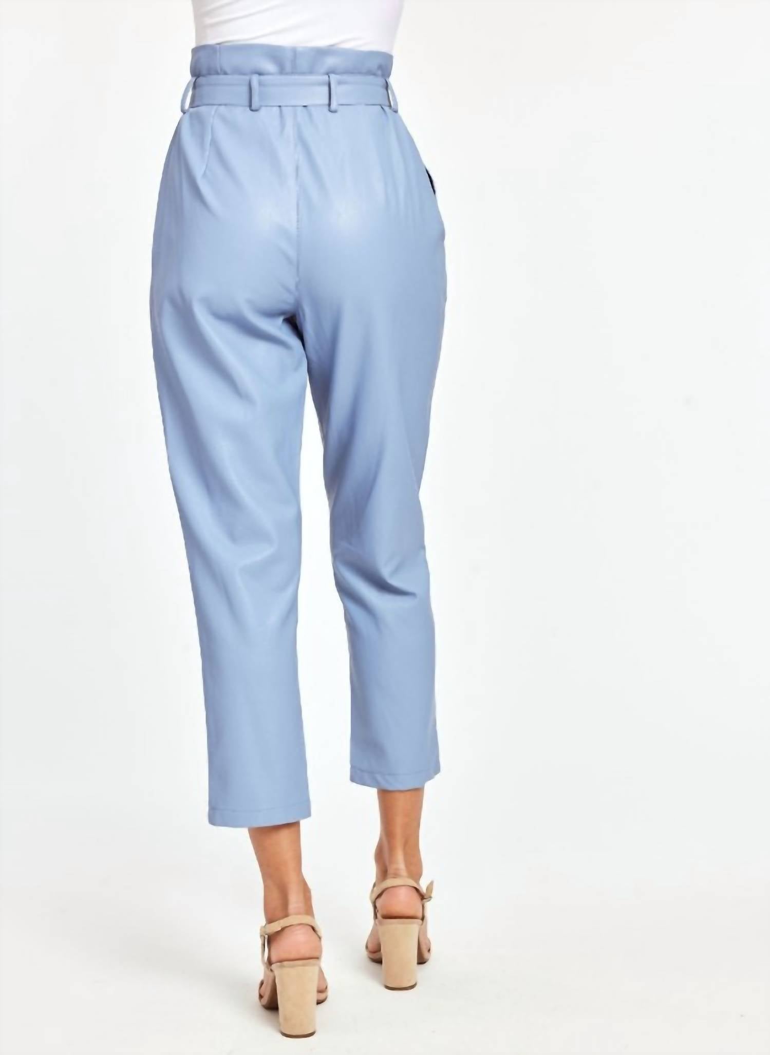 A perfectly tailored straight leg that you'll want in every color! Faux leather. Relaxed belted tie-waist. Mid-rise. 100% Polyurethane. True to size. Dry clean.