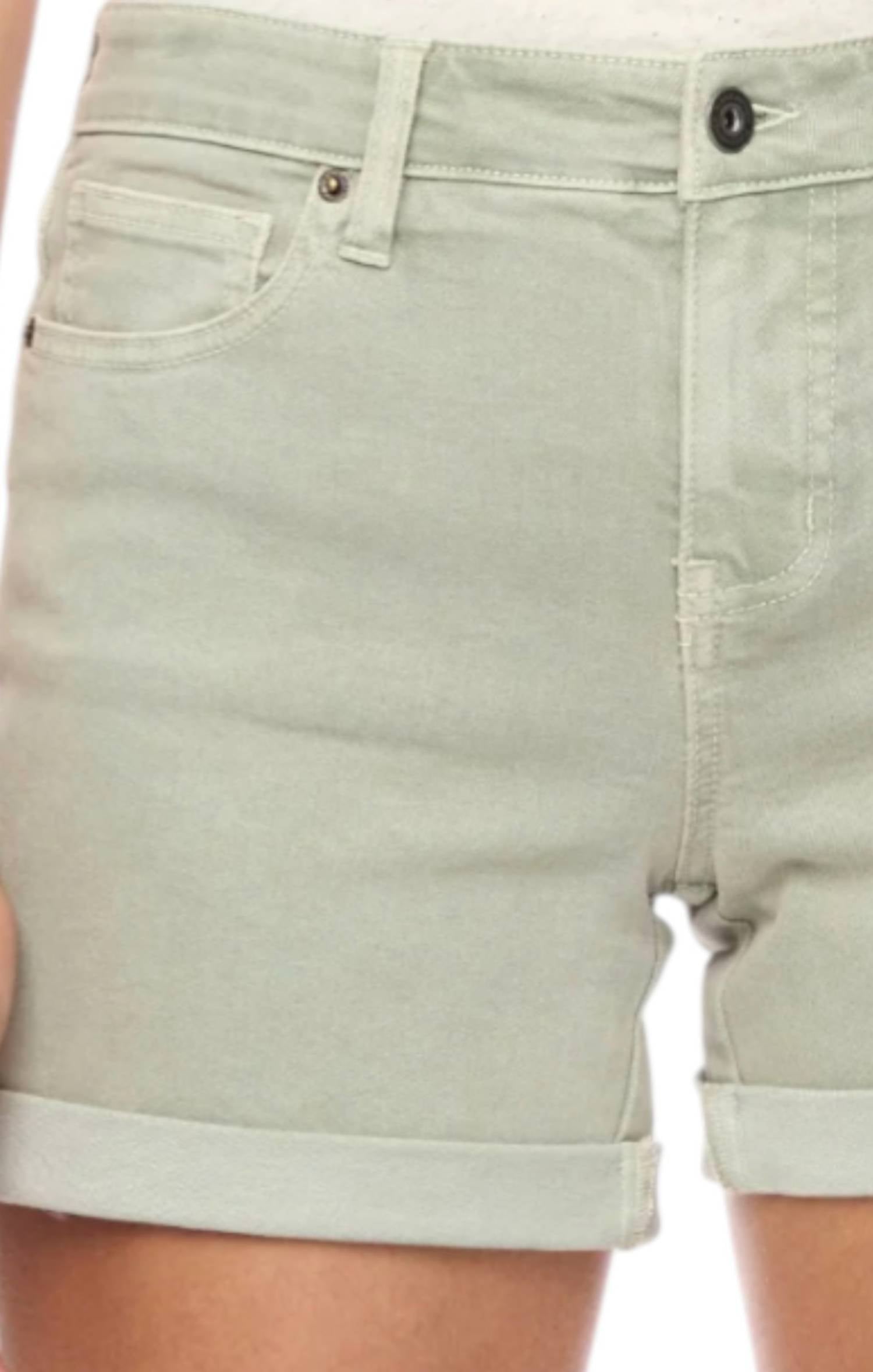 Tuck your favorite tee into these high-waist shorts for a more casual-cool feel. Elevate your summer wardrobe with the Shelby Cuffed Denim Short by Flag & Anthem, perfect in chic Sage and boasting a stylish high-rise design with a 4.5" inseam. Engineered from cotton and spandex, they deliver ultimate comfort and flexible durability. Closure is handled by a classic button fly/zipper, while the 5-pocket styling and cuffed hem add to its practical appeal. Easy to care for, simply machine wash and tumble dry, making these shorts an ideal choice for travel and streetwear looks.