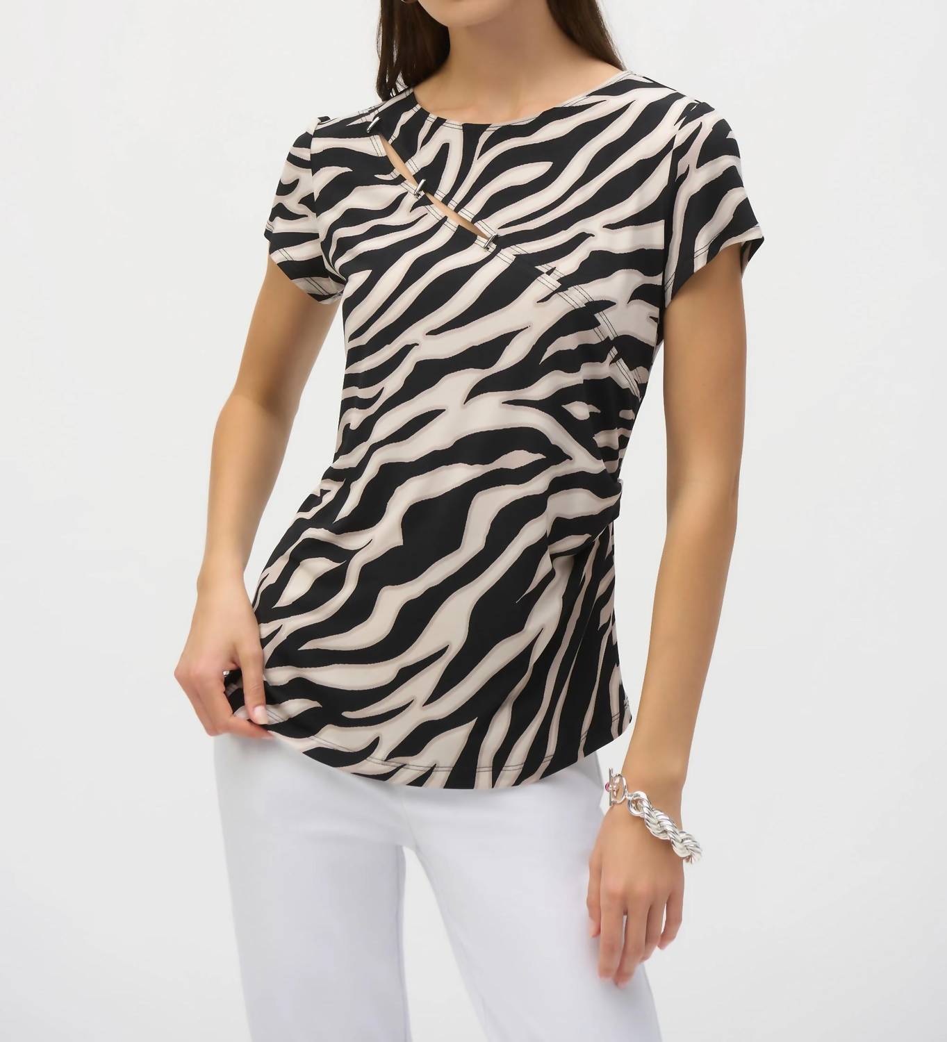 Joseph Ribkoff - Animal Print Keyhole Short Sleeve Top