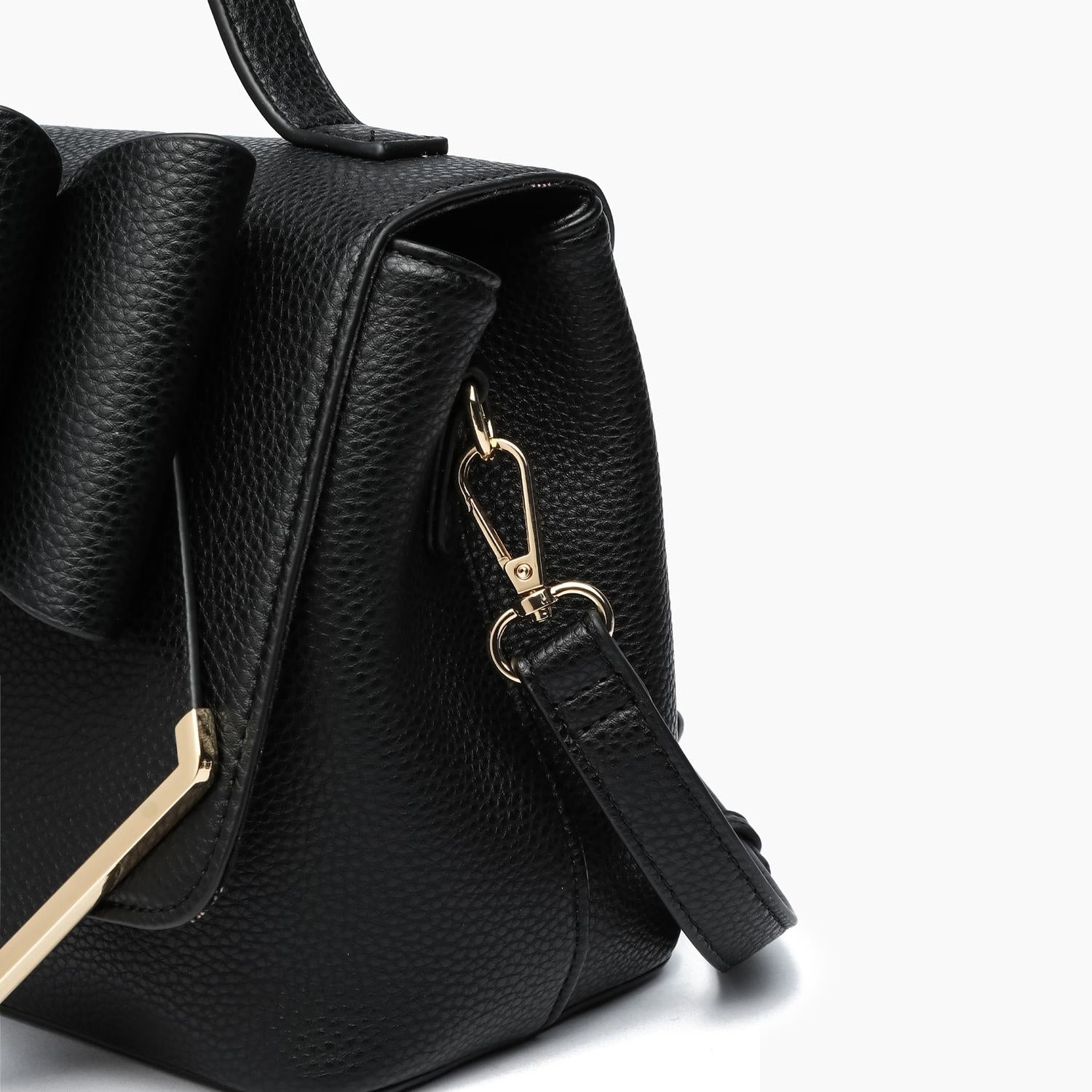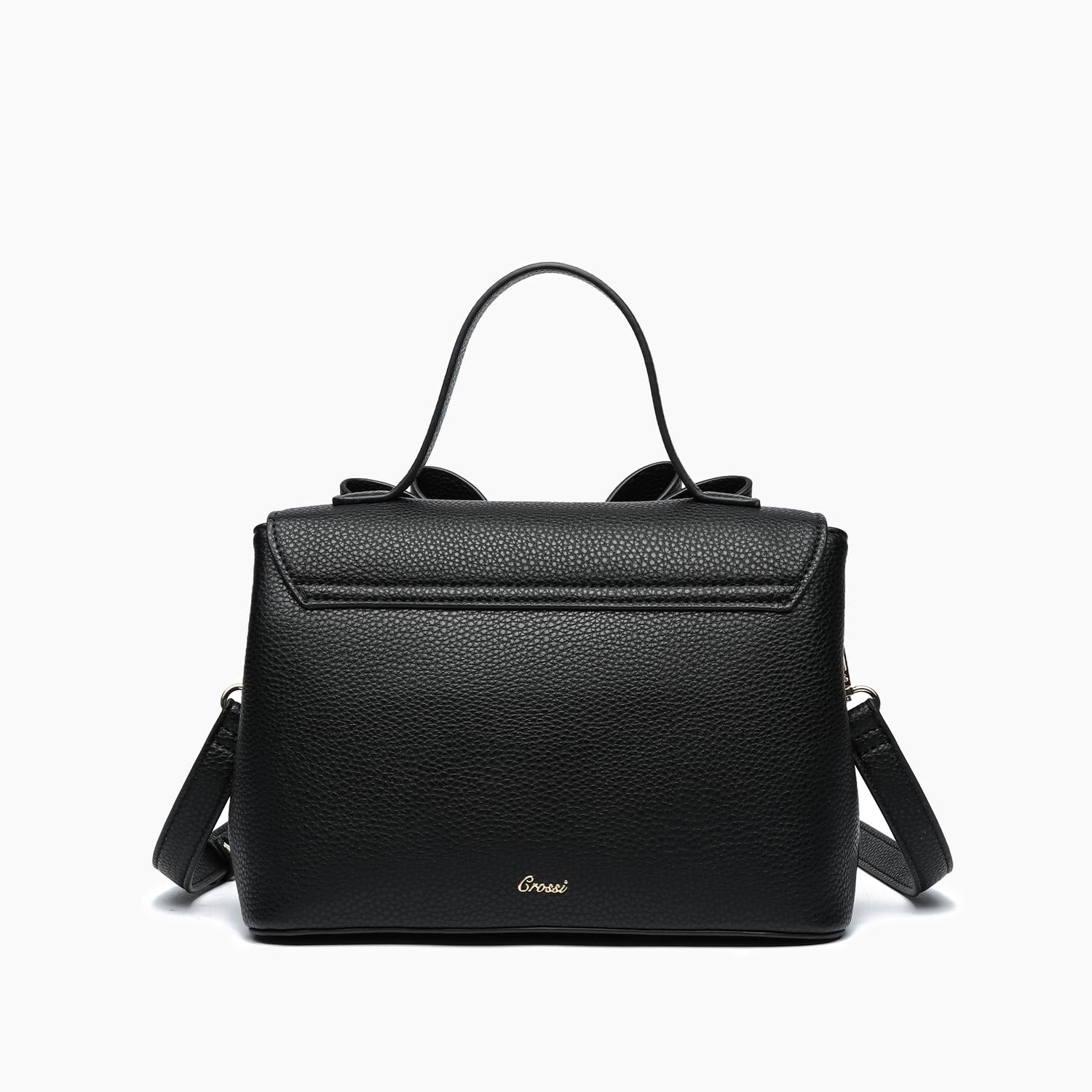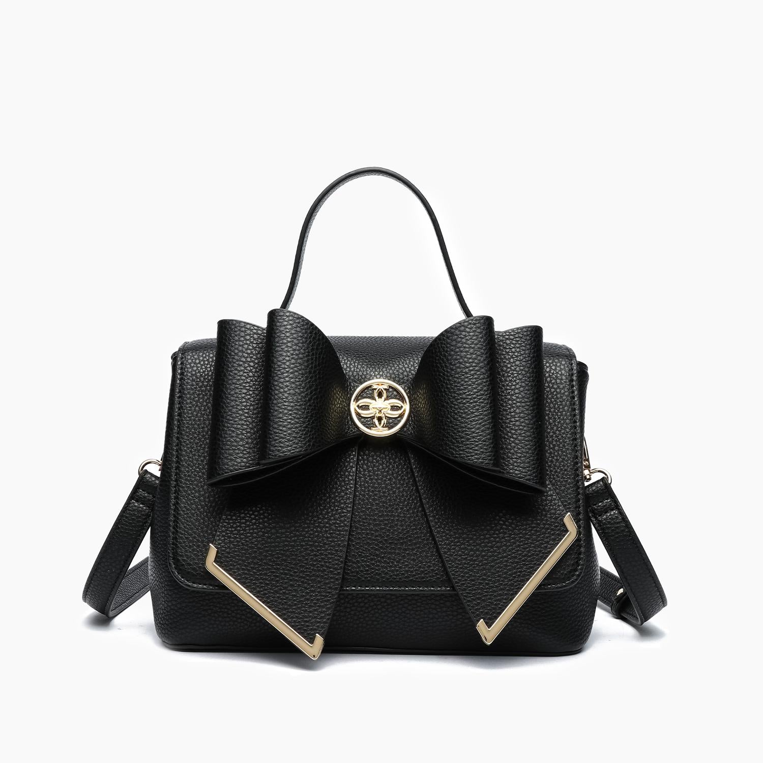 Introducing the Women's Jasmine Bow Vegan Crossbody Bag by Like Dreams, a blend of modern elegance and vintage charm in sleek black. Crafted from 100% vegan leather, this bag features a convenient 4" top handle and a 23" adjustable or detachable strap for versatile carrying. With dimensions of 9 3/4" width, 7" height, and 5" depth, it offers functional compartments secured by a magnetic snap closure, making it a perfect companion for any occasion. Enjoy the lightweight feel at 19.97 oz and add a touch of sophistication to your ensemble.