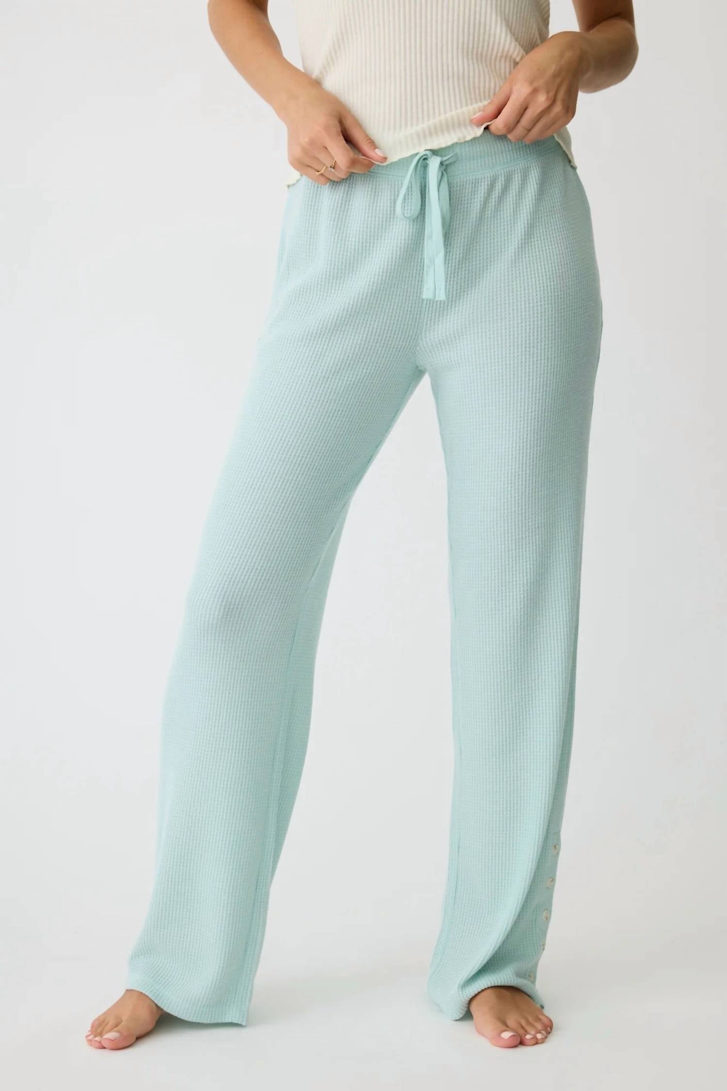 Embrace comfort and style with the Take It Easy Pant by PJ Salvage, presented in a fresh Seafoam Green. Crafted with 65% Polyester and 35% Rayon, these solid, wide-leg pants feature a pull-on closure for effortless wear. Perfect for spring workouts or St. Patrick's Day celebrations, they offer a mid-rise fit with a flattering silhouette. Care for them easily with machine wash cold and lay flat to dry instructions, suitable for a fuss-free fitness wardrobe.