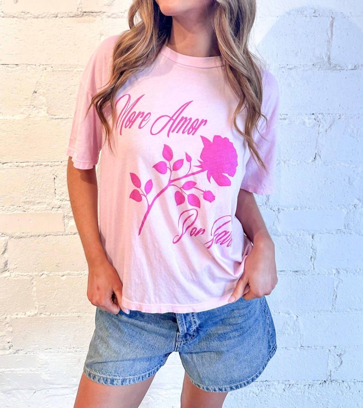 Look no further, you just found your perfect tee! Final Sale Featuring a bold, graphic "More Amore Por Favor" slogan, this tee combines casual comfort with a message of love and positivity. Perfect for those who want to make a statement without saying a word, this top is sure to become a favorite in your everyday rotation. Crafted from soft, premium fabric, the Project Social More Amore Por Favor Tee offers the perfect balance of comfort and style. The lightweight material ensures breathability and a relaxed fit, making it ideal for year-round wear. Whether you're running errands, meeting friends for brunch, or simply lounging at home, this tee offers versatility that adapts to your lifestyle. 100% Cotton Machine wash cold Wash inside out with similar colors Dry flat Do not iron print Cool iron if needed Model Meet Brae! Height: 5’7” Hips: 35” Bust:34” Waist: 25” Wearing Size: Small