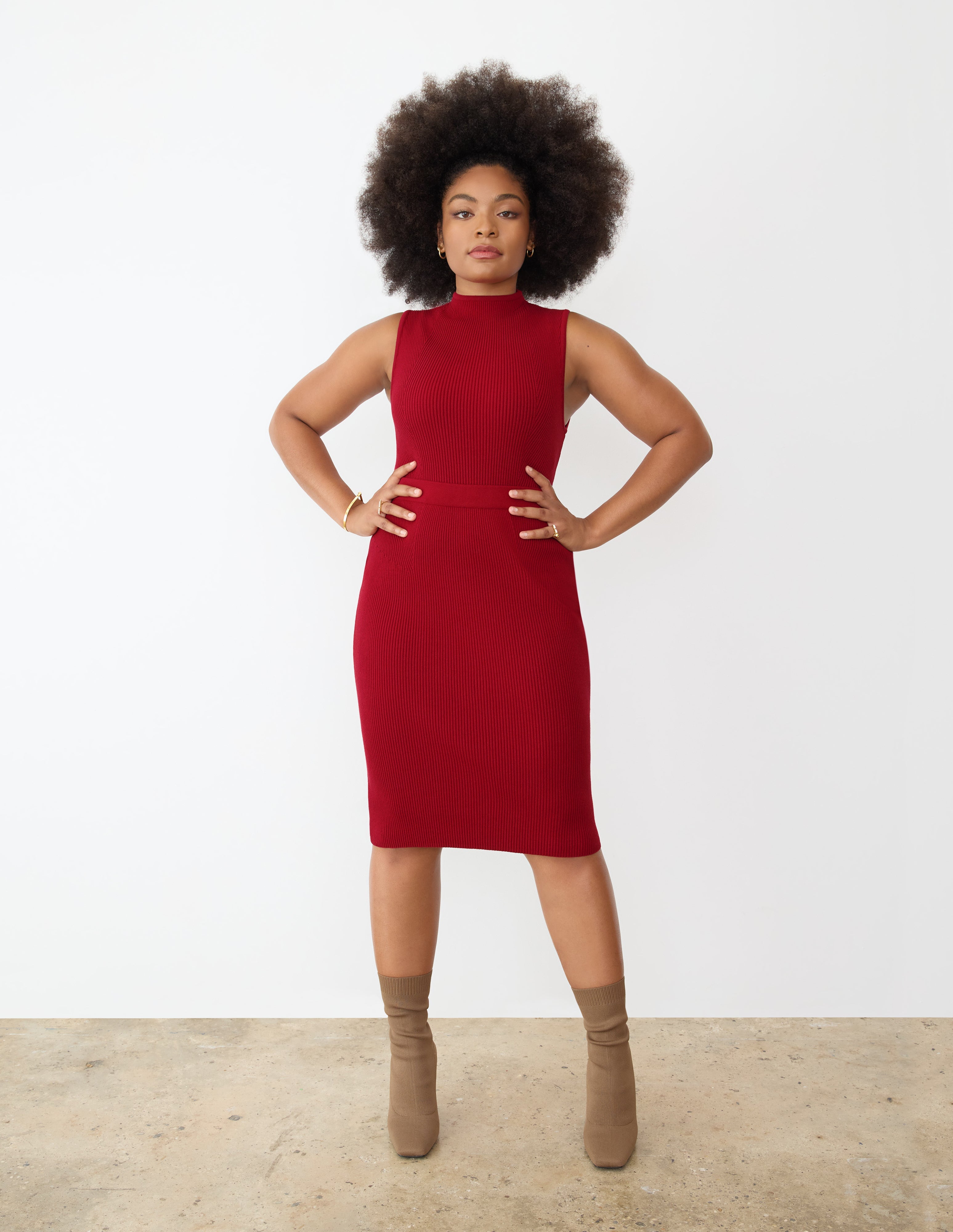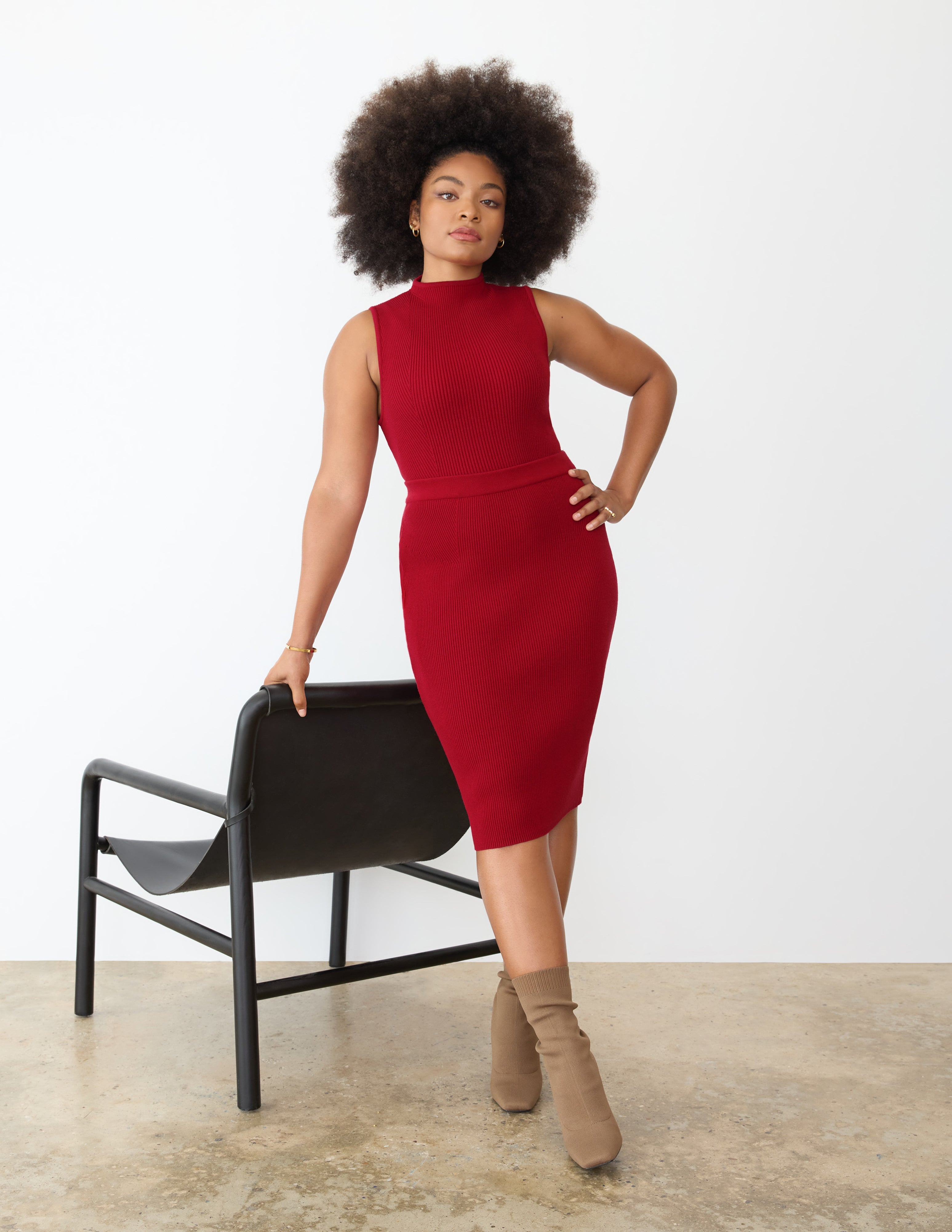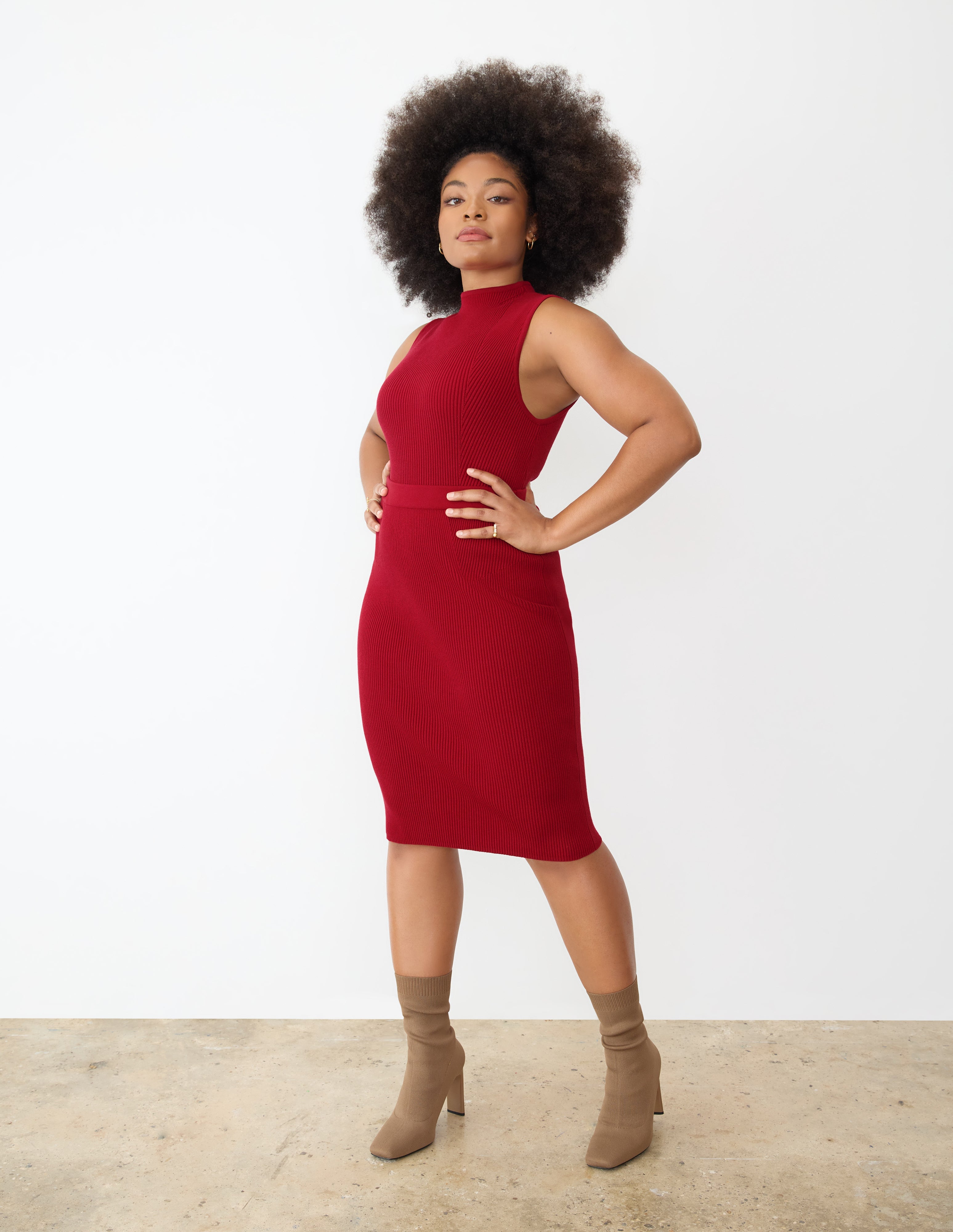 Polished yet easy to wear, this fitted, ribbed skirt retains its shape all day and features an elastic waistband.