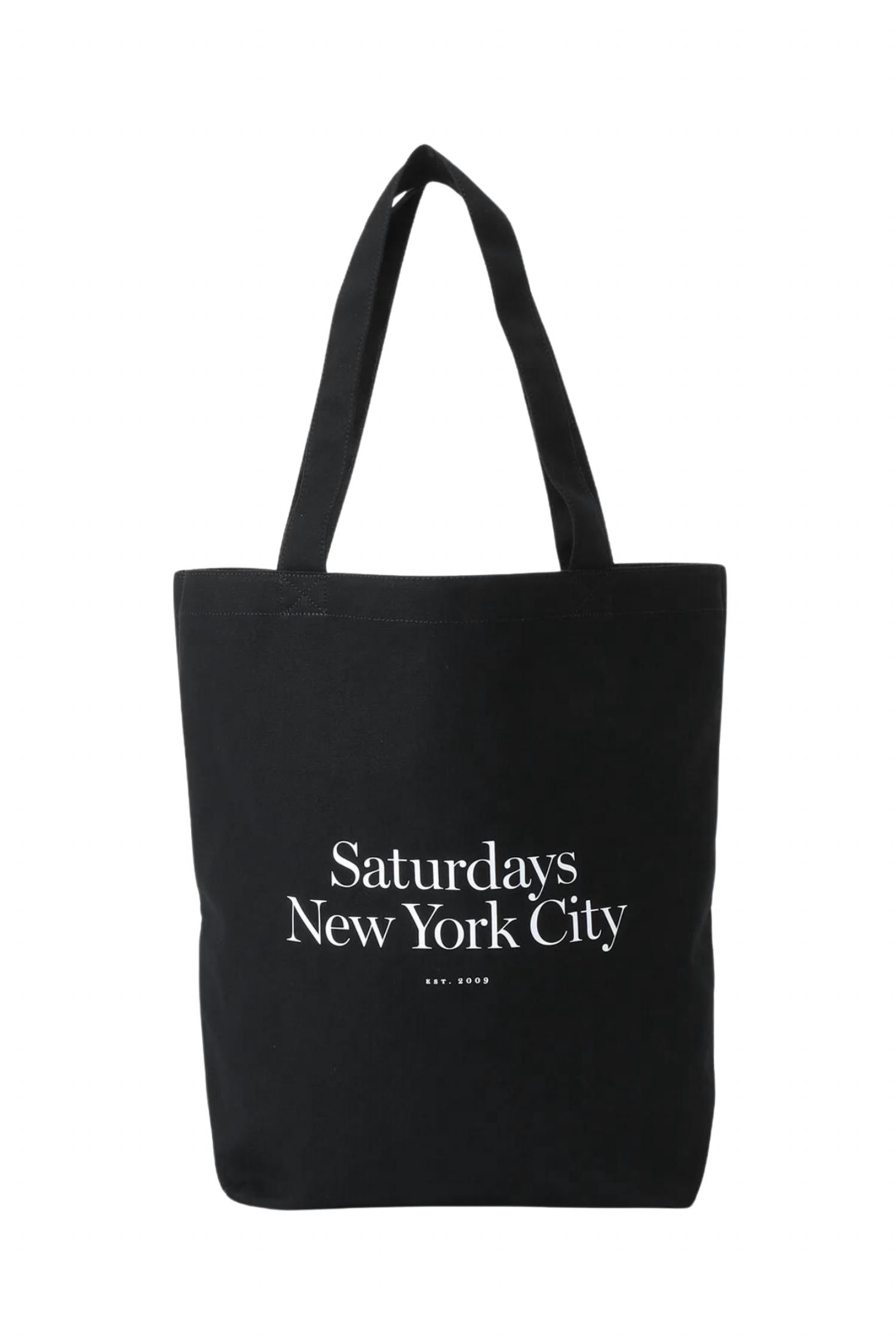 Discover the Women's Miller Standard Tote by Saturdays NYC, a chic accessory in timeless black. Crafted from 100% cotton canvas, this tote combines style with functionality. It features a floating interior pocket and two durable double-layered straps for easy carrying. Dimensions: 18" height x 14" width x 5" depth.