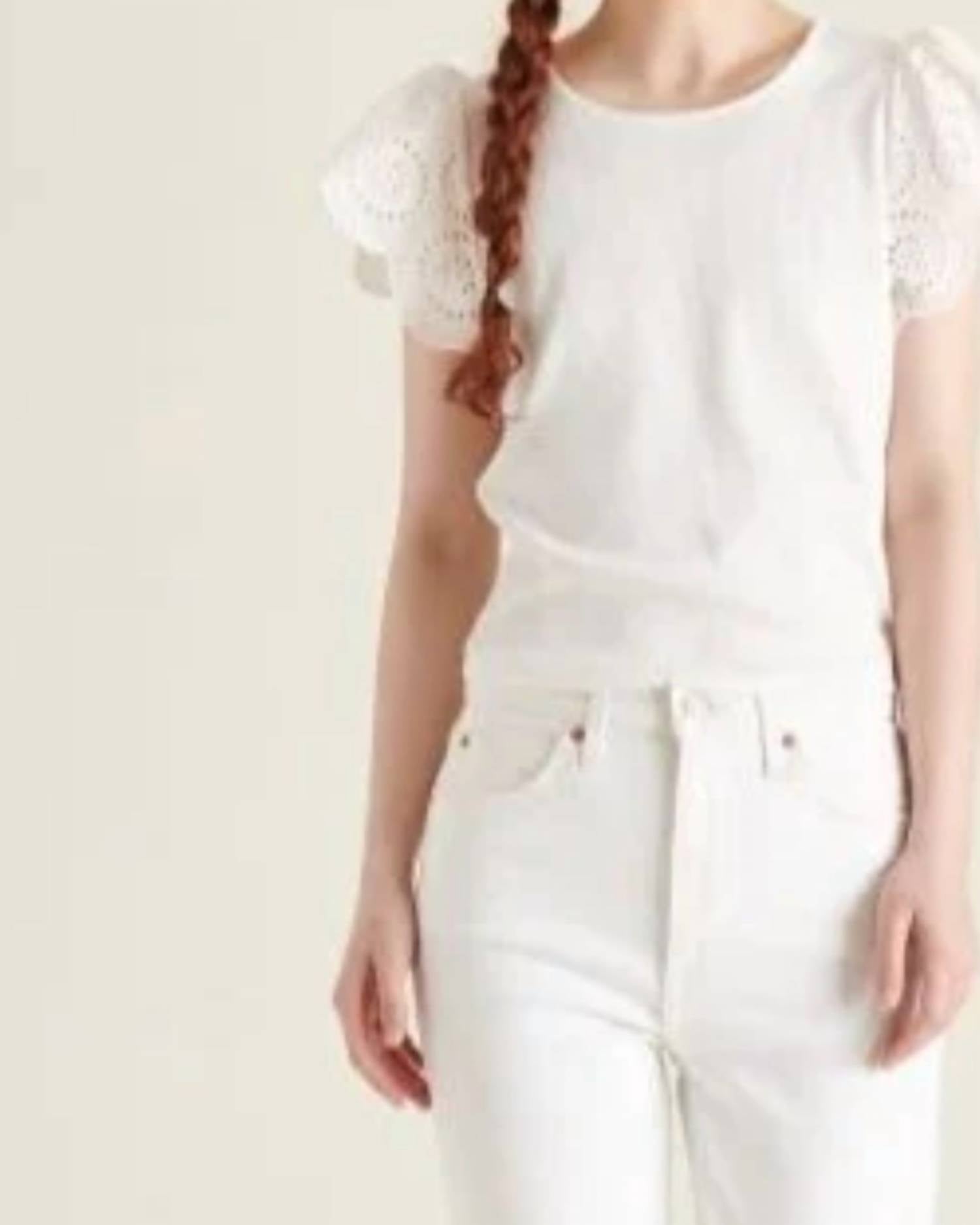 A versatile blouse that works from desk to dinner! Elevate your summer wardrobe with the Olina Ruffle Top by Steve Madden, a minimalist piece crafted in a solid white hue perfect for vacation occasions. This women's blouse features cap sleeves and a crewneck design, combining both style and comfort with its 74% polyester, 26% rayon blend. Closure: Pull on. Care instructions: Hand wash and lay flat to dry.