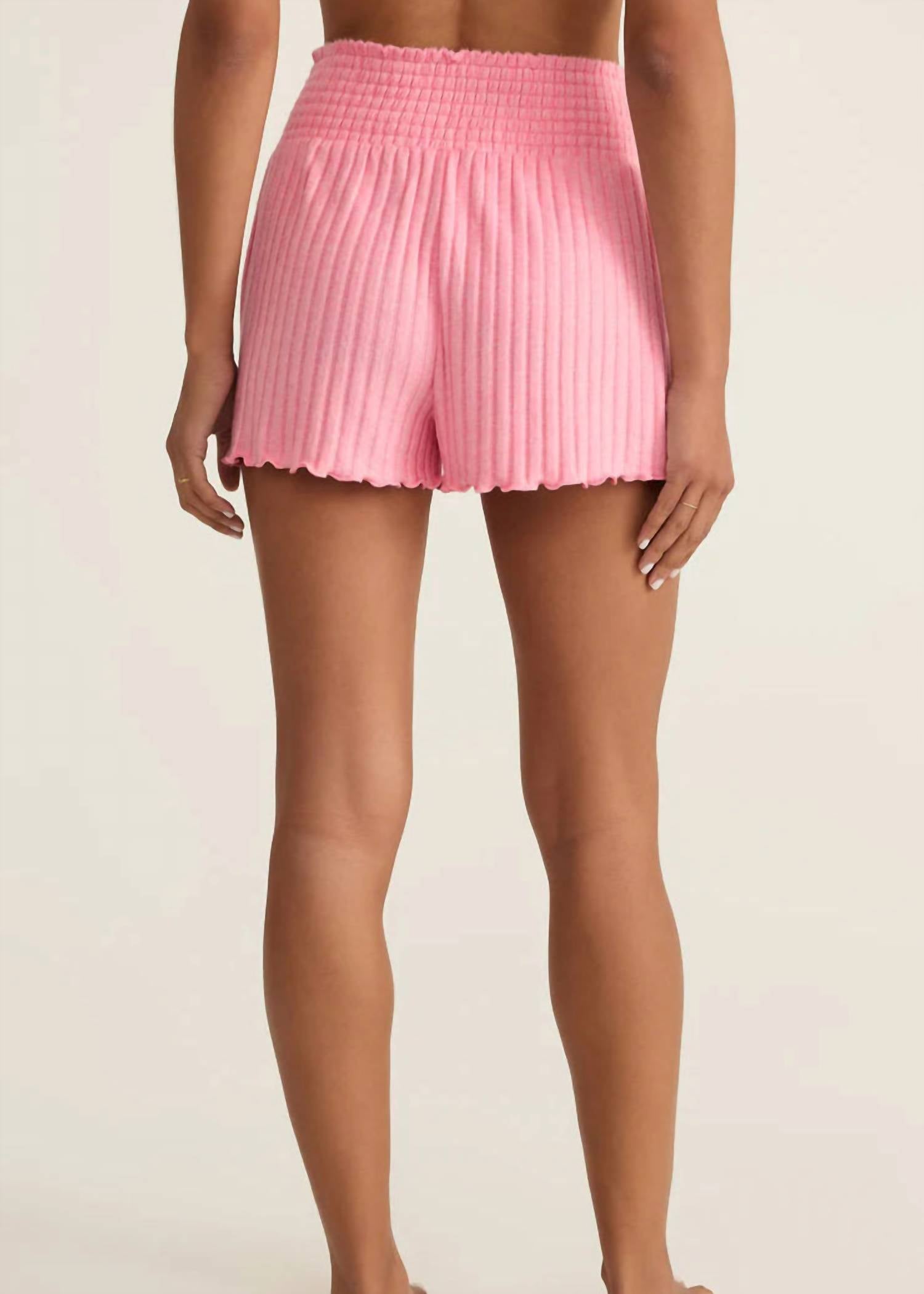 High-waist is here to stay and we especially love this style short. Step into summer with Z Supply's Dawn Smocked Rib Shorts in vibrant Passion Fruit. Crafted from 97% Polyester and 3% Spandex, these high-rise shorts offer a silky rib texture and a comfortable smocked pull-on waistband. Designed for a regular fit, they are perfect for minimalist beach days with their textured pattern and midweight feel. Care is effortless: machine wash on a gentle cycle and tumble dry low.