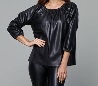 Dolce Cabo - Hollie Faux Leather Blouse with Puff Sleeves