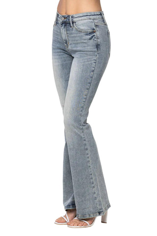 Judy Blue - Mid Rise Tinted Pin Tack Detailed Flare Jean