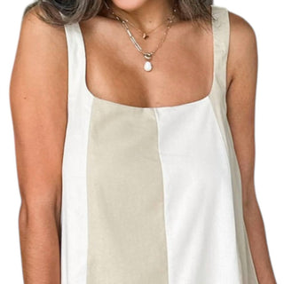 Mable - Linen Color Block Sleeveless A-line Mini Dress
