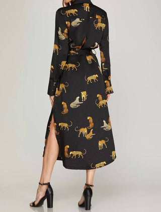 Umgee - Long Sleeve Cheetah Cheeta Print Midi Dress